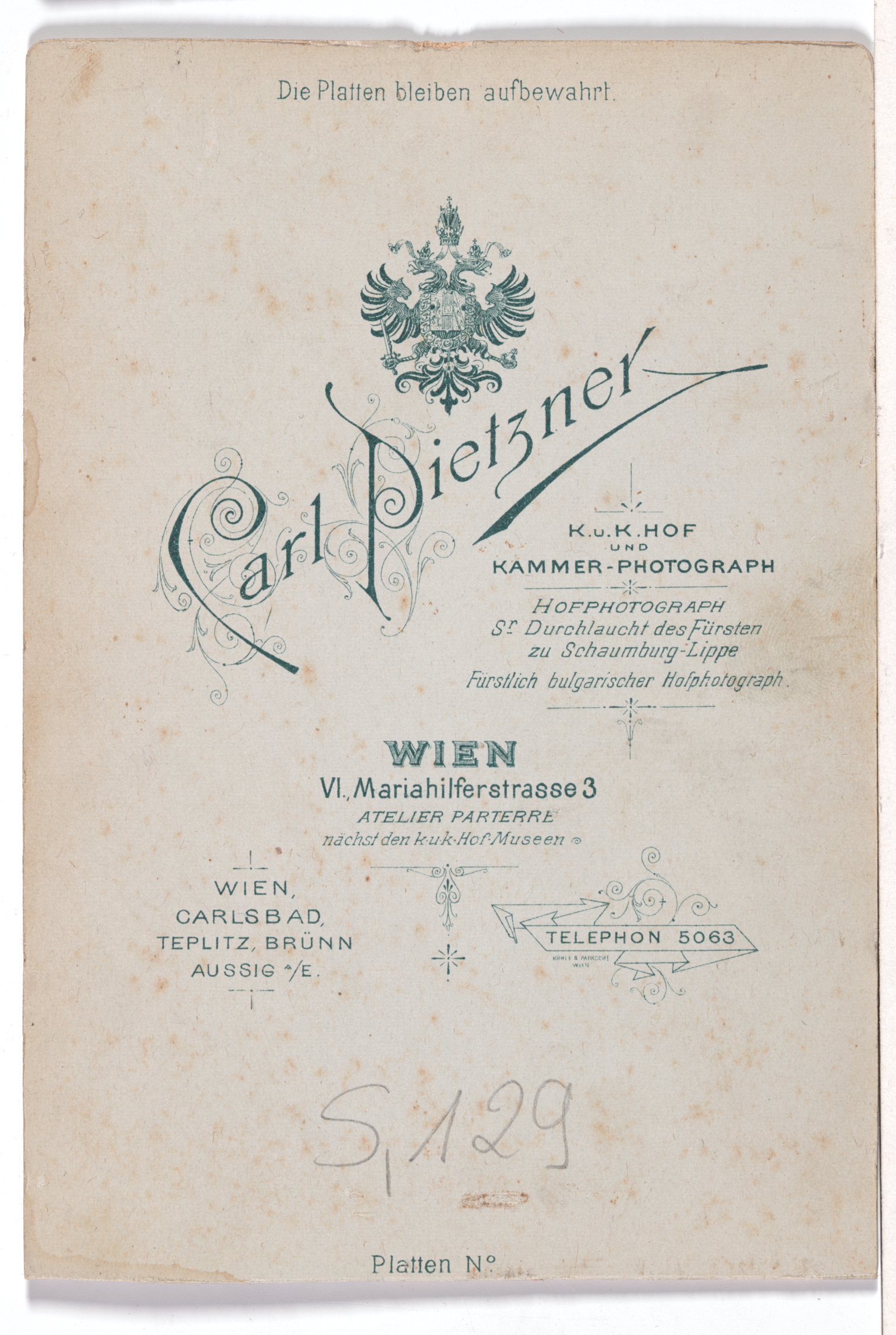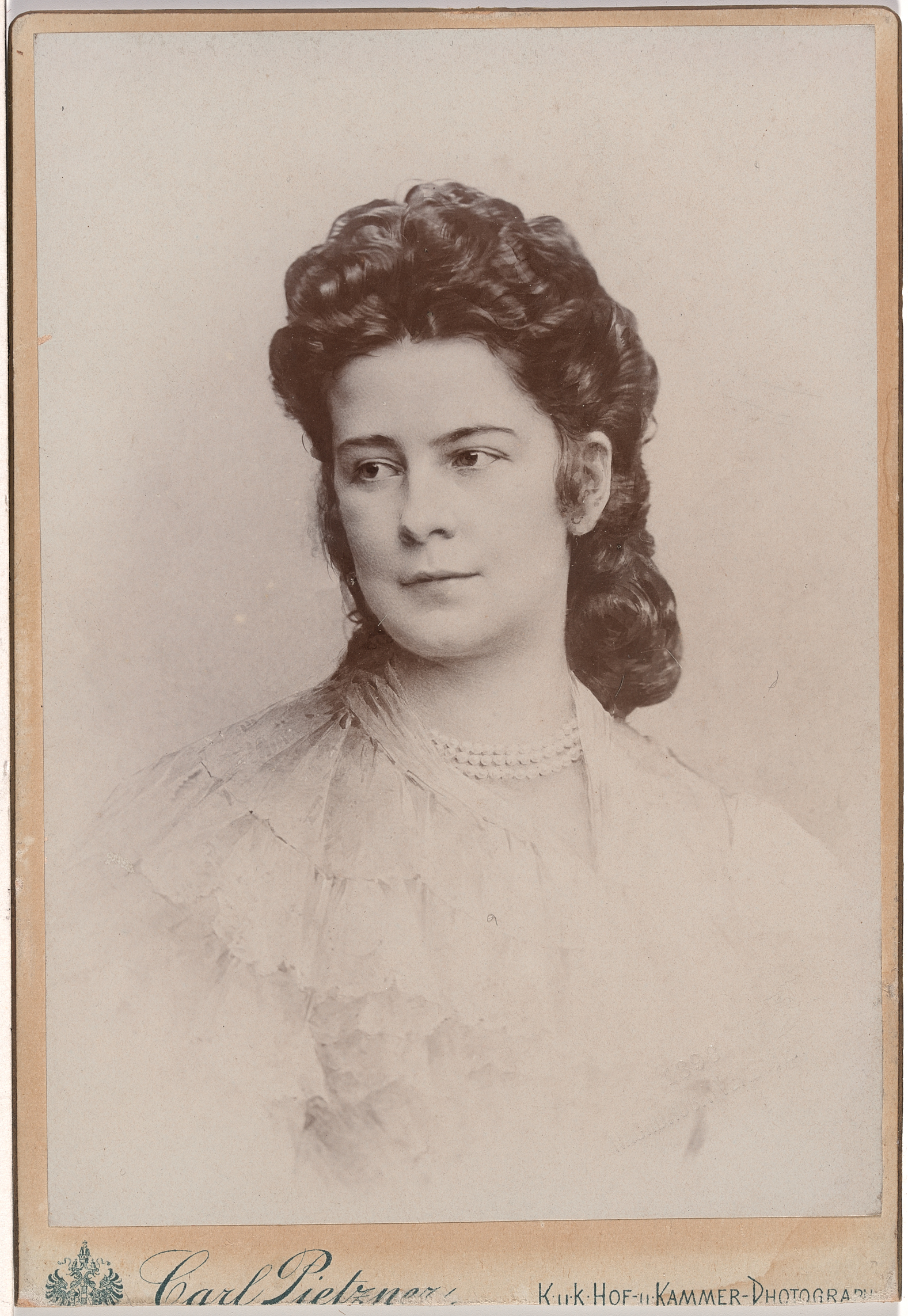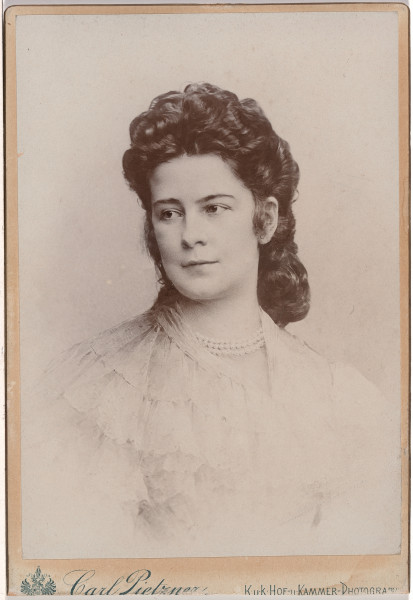 The rectangular photograph depicts a young woman shown half length, slightly turned to the right. Her face is oval with a high forehead, small nose and slightly smiling lips. She has dark wavy hair pinned behind the ears. We can see her left ear. The woman is wearing a white airy dress with frills. At her neck, she has a triple string of pearls. It was acquired from the collection of the Potocki family of Łańcut in 1944.