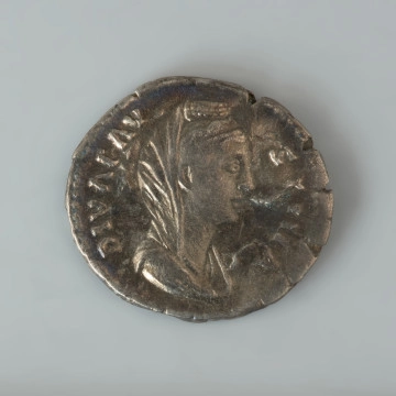 The silver denarius of the Emperor Hadrian (Publius Aelius Hadrianus, lived 76-138; reign 117-138) was made between 119 and 122. It is well preserved, the images and inscriptions on both sides are still clearly visible. The obverse features a depiction of the right profile of the emperor, with a beard, wearing a laurel wreath. On the rim of the obverse, there is the inscription IMP CAESAR TRAIAN HADRIANVS AVG. The reverse shows the goddess Pax seated on a throne, facing right, in a draped dress. In her right hand she holds up a miniature representation of Victoria, the goddess of victory. Her left arm is lowered, and she holds an olive branch in her hand. The rim shows the inscription P M TR P COS III. In Roman mythology, the goddess Pax, a daughter of Jupiter and Justitia, is the personification of peace, prosperity and justice. She appears on the Roman coins from the mid-first century until the reign of Constantine the Great in the years 306-337. This denarius was found in 1839 by a farmer during fieldwork. It was most likely a part of a larger, destroyed and scattered hoard of Roman coins. This is evidenced by the three other Roman coins found in close proximity: another denarius of Hadrian and two denarii of Antoninus Pius.