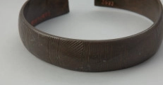 A vast sheet of bronze was used to make this very impressive bracelet. A narrow, arched rib runs along the whole length of the hoop, and on both sides of it, there are engraved ornamental motifs joined together in a harmonious whole. The ornament is part of a group of objects discovered on 19 March 1890 in a marshy meadow called "Schild". The context of the discovery indicates that it could have been a sacrificial gift presented to the gods of the water element. The deposit originally contained 11 hoops, eight of which have survived: two twin wide-cuff bracelets and six made of narrow, thick and decorated bronze band. The arrangement of these ornaments in the ground was very compact - wide bracelets were inserted one into the other, and narrow ones were stuck inside them. The finder, Christian Plathe, a farmer, donated the hoops through Professor Blasendorff from Pyrzyce, probably a teacher at the local grammar school, to enrich the collection of the Society of History and Antiquities of Pomerania (Towarzystwo Historii i Starożytności Pomorza) in Szczecin. At the end of the 1920s, the Society's resources were taken over by the Pomeranian State Museum (Pomorskie Muzeum Krajowe). The deposit remained there until August 1944, when the collection was evacuated in danger of Allied air raids on the city. The Nieborowo hoard returned to Szczecin in 2009 due to the bilateral Polish-German exchange of archaeological artefacts. Apart from its excellent display value, the hoard of ornaments from Nieborowo is also of considerable scientific significance. This discovery represents a very poorly recognised early phase of Lusatian culture development in Pomerania. Two cuff rings belonging to it are a unique find.