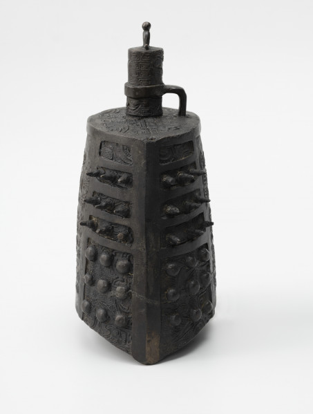 The Zhou (Chou) dynasty is the longest-ruling Chinese dynasty in the country's history, that ruled between 1122 and 256 BC. At that time in the empire the Iron Age began and writing was developed. The presented zhong type bell was most likely made in the late period of the reign of this dynasty, around 600–256 BCE. At that time, they were used for ritual and entertainment purposes – they were a luxury reserved for Chinese rulers and the elite.