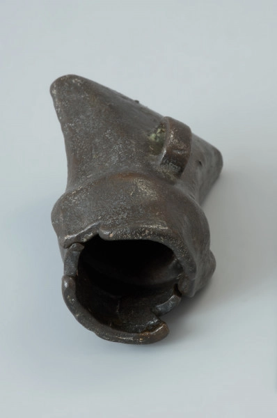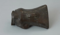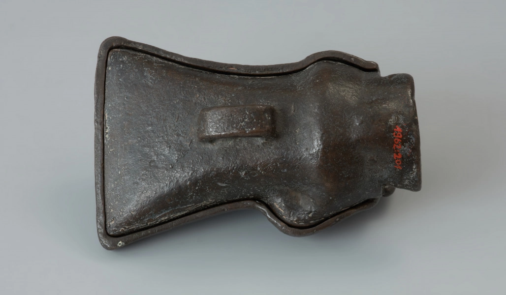 The mould was made of bronze and consists of two parts called shells. This unusual object was used to make small axes with an eye and a socket, in which a wooden handle was attached. The mould was found in 1884 in a swamp. It was an element of a large hoard that included parts of a horse tack (2 twin bits, 14 jingles , 14 buttons, 3 rings), two pairs of moulds for casting axes, three fibulae, an impressive razor and destructs of some bronze and iron products. The marshy context of the hoard may attest to its special significance connected with the sphere of beliefs and sacrificial offerings. The deposit, dated to the Early Iron Age (approx. 750-600/550 BC), found its way to the museum collection in Szczecin and was stored there until August 1944. Due to the approaching front and Allied air raids, it was transported deep into Germany together with other valuable artefacts. The hoard did not return to Szczecin until 2009, which was possible due to the Polish-German exchange of old (pre-war) archaeological collections. Most of the items found in the Kiełpino deposit have features of the products of the Hallstatt culture, whose name derives from the cemetery in Hallstatt, Austria. However, the presented casting mould is an exception, as the type of axe it produced refers to specimens known from the northern part of Central Europe. It should be emphasised that bronze casting moulds are rare finds in Poland. So far, only ten specimens have been recorded.