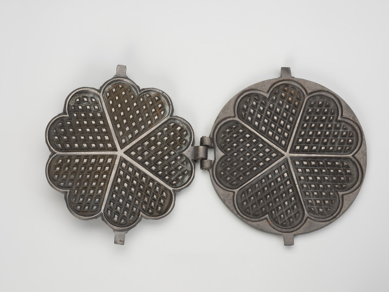 Waffles were a popular treat in Pomerania, made at home using heavy, cast-iron waffle irons. Preparing them was not difficult, but it required the housewife to use ingredients in specific proportions. The recipe was often inscribed on the waffle iron. The batter was made from flour, milk, eggs, butter, and yeast, and sometimes potatoes were added as well. The prepared batter was poured into the center of a well-heated and greased (with pork or goose fat) waffle iron and spread evenly. After a short time of baking, the waffle iron was turned using a poker so that the top surface became the bottom, ensuring the waffles were evenly baked on both sides. The finished waffles were spread with jam or sprinkled with sugar. The ethnographic collection of the National Museum in Szczecin includes a waffle iron that produced heart-shaped waffles with a grid pattern – known in Germany at least since the first half of the 19th century. The lid of the iron has a recipe inscribed on it, which includes potatoes. The round base that allowed the iron to be placed on a stove ring has not survived. Agnieszka Słowińska