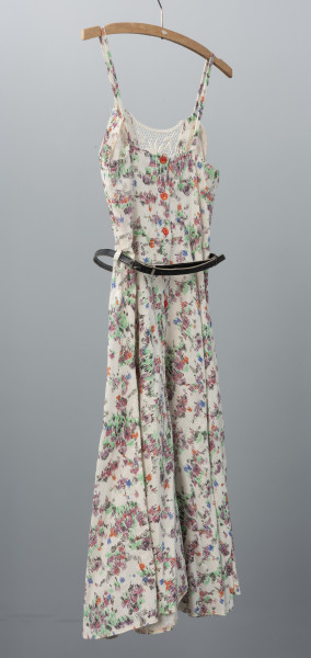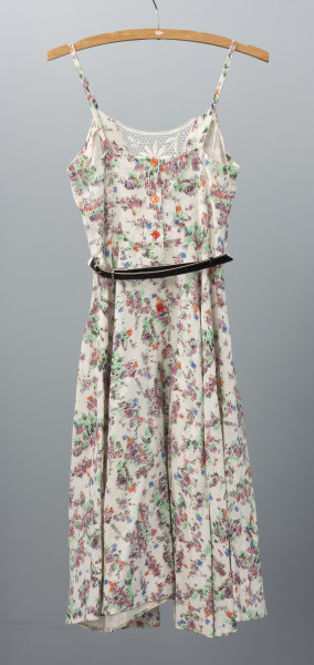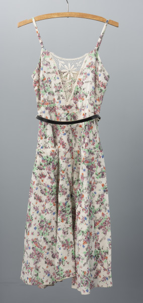 One of the first Polish clothing manufacturers in Szczecin after World War II, the State Clothing Works (Państwowe Zakłady Konfekcyjne), opened as early as October 1945. Initially, it produced railway uniforms, military long johns, workwear, and men's flannel shirts. After relocating to a new headquarters at 50 Wyzwolenia Avenue, the company expanded into women's fashion, which quickly gained popularity abroad. The factory's success was driven in part by Domicela Mazurkiewicz, a seamstress who, after five years of work, was promoted to director. Affectionately called Dana by her staff, she gradually built a new Szczecin-based brand. In 1962, she hired talented designers: Izabela Górska-Wójcik, Halina Karpińska, and Zofia Zdun-Matraszek. The company, renamed Zakłady Przemysłu Odzieżowego Dana in 1967, became renowned for its high-quality, colourful fashion collections, which soon won awards at national clothing fairs. Among the most popular collections were those inspired by folk motifs: the Kurpiowska and Piastowska lines, featuring dresses known as chłopki and Kwiaty Polskie (Polish Flowers). Later, banana skirts (spódnice bananówki), made from panels shaped like banana wedges, became a hit. The company’s prosperity ended in the 1990s when it was privatised. Today, the building that once housed Dana is now a hotel of the same name. A small collection of Dana products and designs from the National Museum in Szczecin is displayed in the permanent exhibition Hans Stettiner – Jan Szczeciński. Everyday Life in Szczecin in the 20th Century. The collection includes the featured summer dress: sleeveless, with a flared skirt and a belt accentuating the waist. Małgorzata Peszko