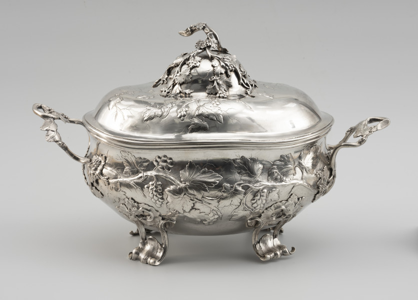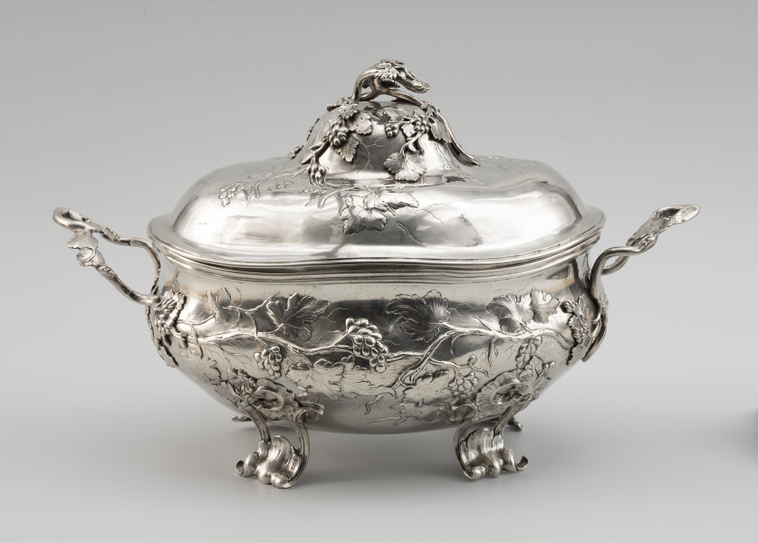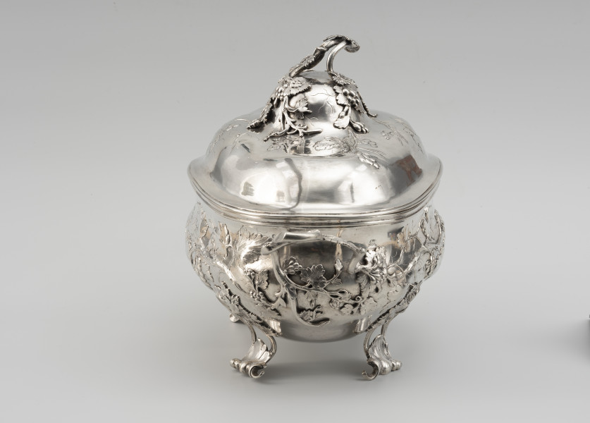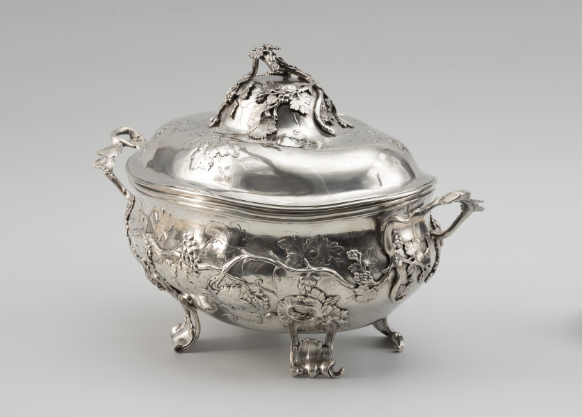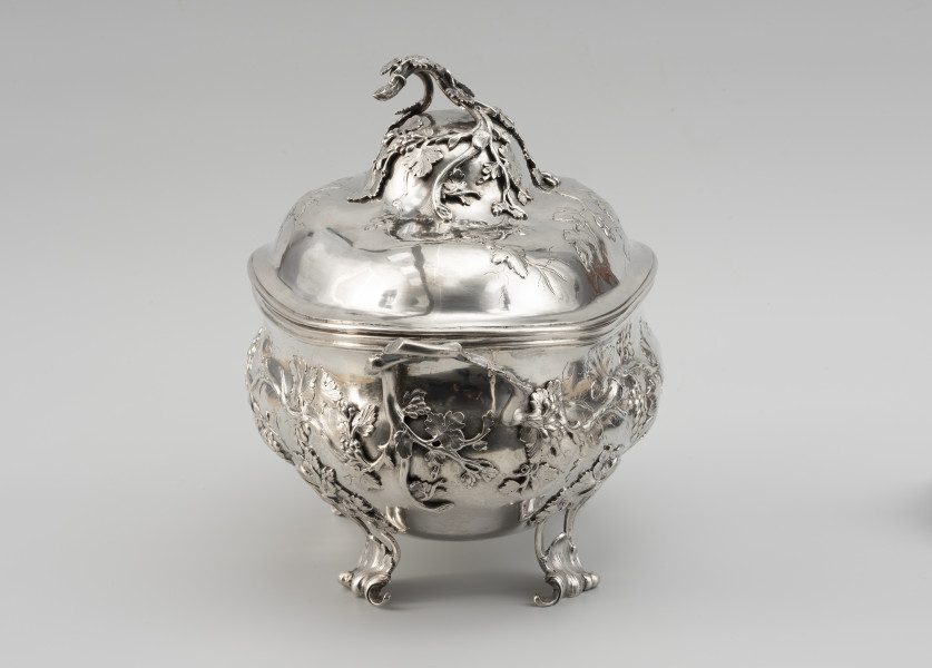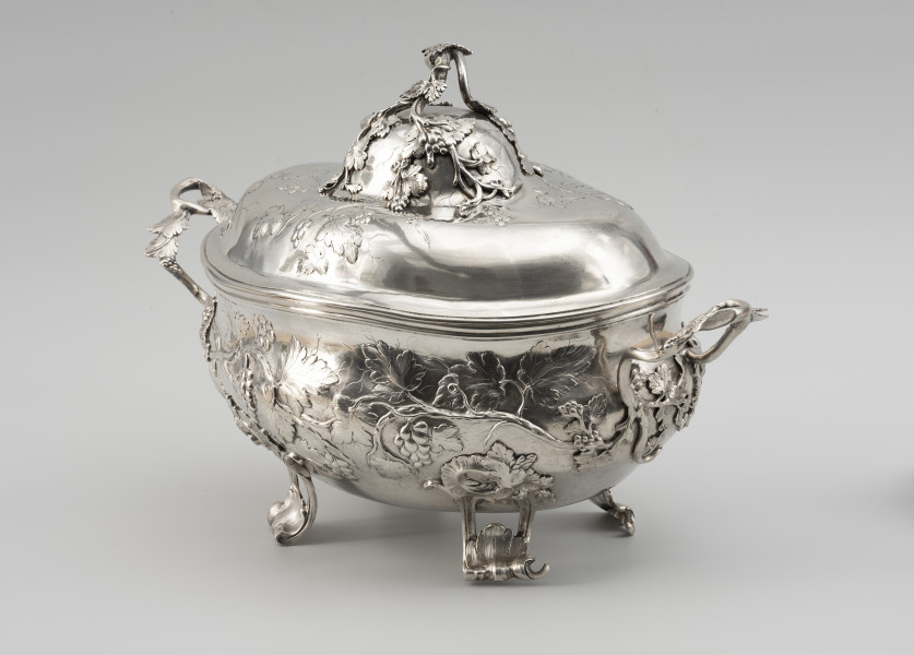 The creator of this piece, Johann Jacob Sandrart II (1733–1798), was one of the most renowned Berlin goldsmiths of the second half of the 18th century. His use of the naturalistic grapevine motif likely references the decoration of a silver service created around 1747 by Christian Lieberkühn the Younger (1709–1769), a court goldsmith in Berlin, for King Frederick II of Prussia (1712–1786). A distinctive feature of the royal service was the handles, crafted as meticulously detailed vine shoots.