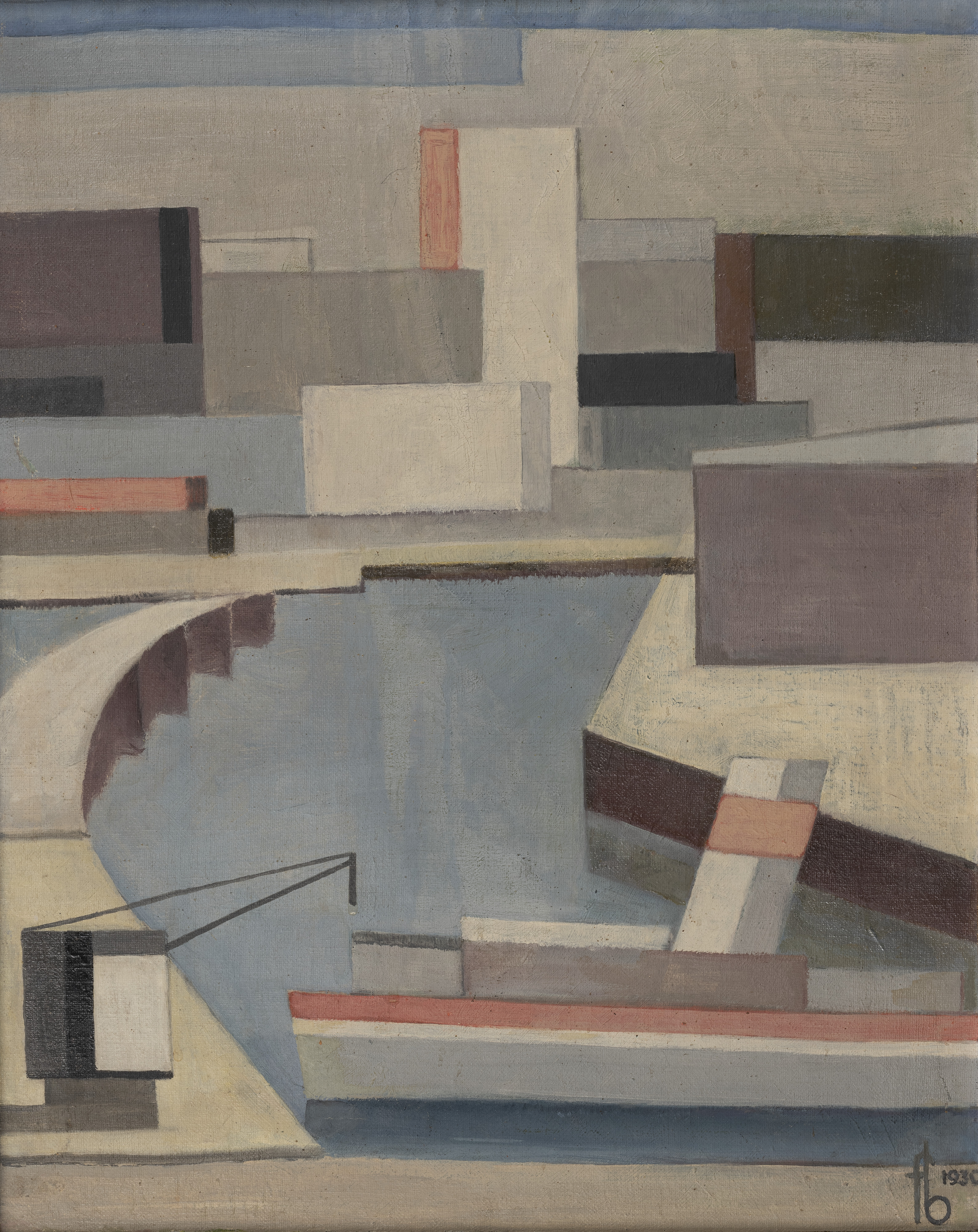 He proposed that they join New Pomerania, a group promoting avant-garde artistic trends in the region. At the group’s first exhibition at the Szczecin museum, which ran from 31 August to 28 September 1930, Bernhardt presented a landscape from this period, Stettin I. This work combined his passion for maritime themes with a newly adopted geometric visual language.