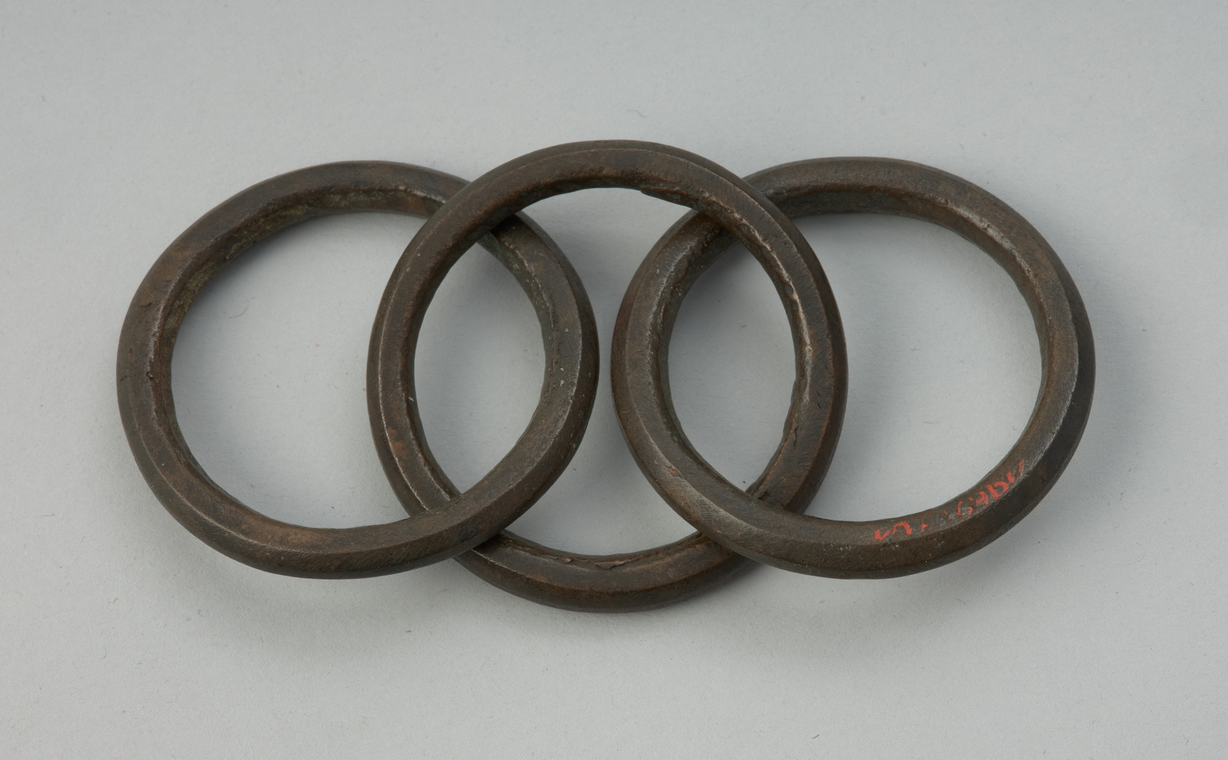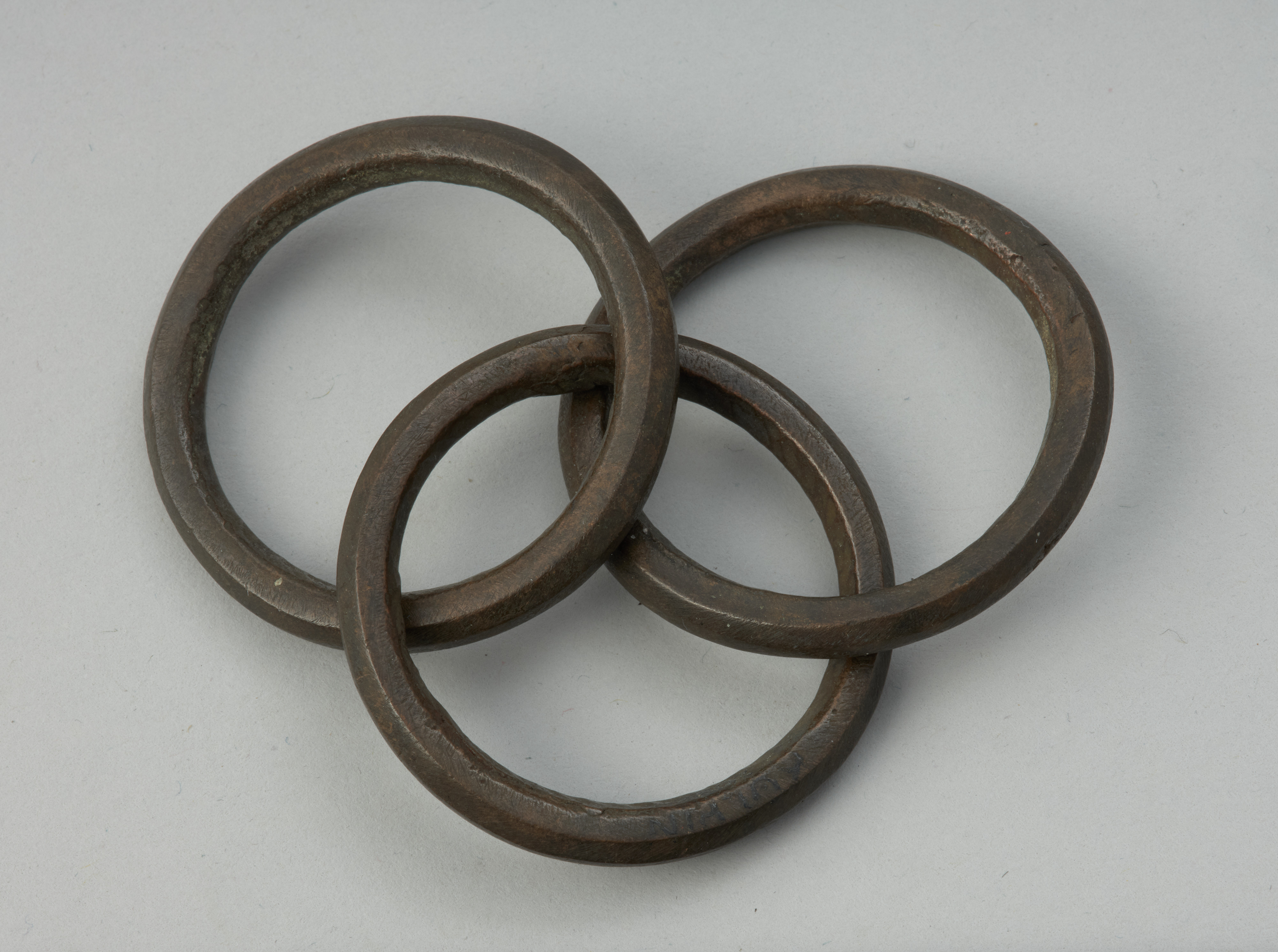 The pendants-jingels belong to the ornaments of a horse tack. This interesting collection is dominated by four sets composed only of circles. However, a pendant with three trapezoidal lamellae attracts particular attention. It is a find of great aesthetic value, characterised by elegance and lightness. The pendants are part of an exceptional hoard discovered in the swamp in 1884, consisting of bits, jingels, buttons, rings, axe casting moulds, fibulae, a magnificent razor, and fragments of bronze and iron products. It should be stressed that the marshy context of the discovery may indicate its special significance connected with the sphere of the sacrum and sacrificial offerings. The deposit, dated to the early Iron Age, i.e., the Hallstatt period C (approx. 750-600/550 BC), found its way to the museum collection in Szczecin and was stored there until August 1944. Due to the approaching front and Allied air raids, it was transported deep into Germany, together with other valuable artefacts. It only returned to Szczecin in 2009 under the Polish-German exchange of old archaeological collections. Most of the objects in the hoard have features of products from the Hallstatt culture, whose name derives from the cemetery in Hallstatt in Austria. The presented pendants-buzzers are unique finds in Poland and were probably brought from the southern regions of Central Europe.