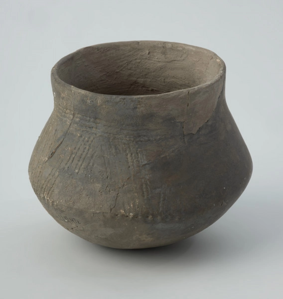 The goblet decorated with bands of circumferential punctures and rafter motifs made with a two-toothed tool is a plaster copy of a clay vessel discovered in a grave from the mid-fifth millennium BC, made at the turn of the 1920s and 1930s. The grave was discovered in autumn 1927 during the construction of a sewage system on Winne Hill (German: Weinberg) in the northern part of Pyrzyce. Two earthenware vessels and fragments of two other vessels, characteristic of the Incised Ware culture, were excavated. The unique find aroused so much interest that a regional guardian of historical monuments searched the place of discovery. He then found a stone axe but failed to observe traces of burial. On the same Hill, fragments of the Linear Band Ware culture vessels were also discovered, which testify to the existence of the oldest agricultural communities in Pomerania. The grave furnishings were the first acquisition in the collection of the then established museum in Pyrzyce. Unfortunately, one of the vessels was lost shortly after its discovery, before it found its way to the Pyrzyce collection, and the rest was destroyed at the end of World War II when the museum building burnt down. In the Szczecin collections, there are faithful copies, made before the war, of a goblet decorated with a stab ornament and a stone axe. Only single early Neolithic graves are known from West Pomerania. All of them come from the Pyrzyce area, the most intensively settled region. Burials found before World War II in settlement of this culture near Pyrzyce are connected with the older communities from this region - the Linear Band Ware culture. The funerary rites of younger cultures with ribbon ceramics are also known from a richly furnished burial discovered in nearby Karsk.