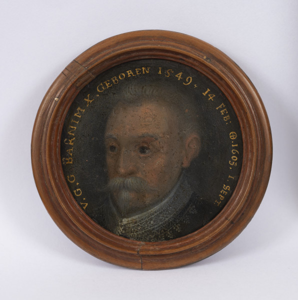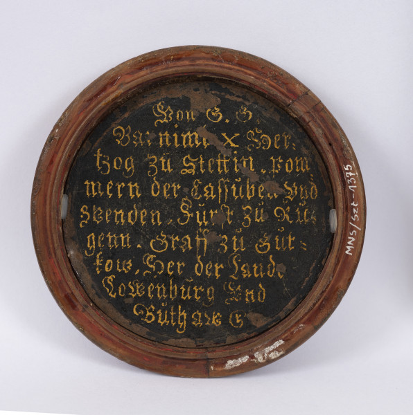 Miniature painting, known since the 15th century, gained significant popularity across Europe in the 16th century. These small portraits depicted the faces of townspeople, aristocrats, and rulers alike. Portraits of rulers were often encased in elaborate jewelled settings and served as gifts exchanged between princely families, particularly during marriage negotiations. They also adorned various utilitarian objects, such as the lids of boxes or draughtsmen pieces. An example of this is the wax portraits created by Heinrich Rapusch (active before 1579–1616) around 1591, from the collection of Saxon Elector Christian I (1615–1691). These included depictions of Pomeranian dukes Barnim IX (1501–1573) and John Frederick (1542–1600). The miniature on display features a portrait of Duke Barnim X (1549–1603), from the Wolgast branch of the Pomeranian dukes, rendered by an unknown artist. From 1569, Barnim ruled over Darłowo, later assuming control of the Bukowo estates and Bytów starosty in 1573. After the death of his brother John Frederick in 1600, Barnim became Duke of Szczecin, though he governed the duchy for only three years until his death in 1603. The portrait of Barnim was likely painted posthumously, as suggested by commemorative inscriptions around the edge and on the reverse of the copper plaque. In the 18th century, the medallion was kept in the library of the Church of St Mary in Kołobrzeg. In 1879, it was purchased by the Society for Pomeranian History and Antiquities (1824–1945) from the church council. Before World War II, it became part of the collections of the Provincial Museum in Szczecin (1927–1945). After the war, the medallion was housed in the National Museum in Szczecin but was stolen in 1975. Six years later, it surfaced in the collection of Stiftung Pommern in Kiel. In 1996, the foundation returned it to the Szczecin museum. Justyna Bądkowska