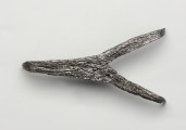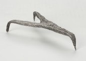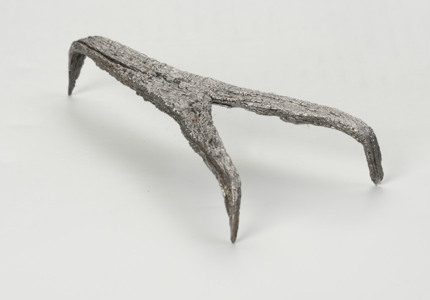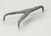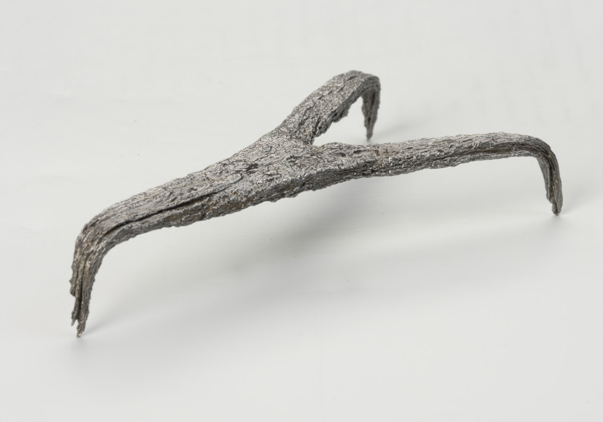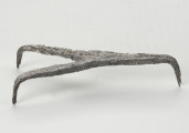 Crampons, also known as żabki (literally "little frogs"), were used to move safely over slippery surfaces. These three-pronged metal devices were made from square-section iron bars, forged while hot. Each arm ended in a spike that embedded into the ground, preventing footwear from slipping. The spikes were positioned at the ends of each arm to maximise traction on snow or ice. They were attached to the sole of a shoe by cutting slits into it and threading the crampon through the openings. Unfortunately, this caused damage to the sole. To avoid this, the crampon could instead be fastened to a piece of bark, which was then tied to the foot with string. Some researchers believe that crampons were essential equipment for fishermen. However, they were also used in transportation and military activities. Merchants and soldiers, especially during winter campaigns, took advantage of them, with the latter gaining a strategic edge over their opponents. Crampons were also used in everyday life. Archaeological material includes four-pronged variants, which are interpreted as horse crampons, fitted to hooves for traction. Finds of this type are relatively rare, despite the fact that such objects were already known in antiquity. They are most commonly discovered in northern Europe, where weather conditions necessitated their use. The National Museum in Szczecin holds many examples of these artefacts, including the specimen on display from Golczewo. They form part of both the museum’s archaeological and ethnographic collections. Ewa Górkiewicz-Bucka