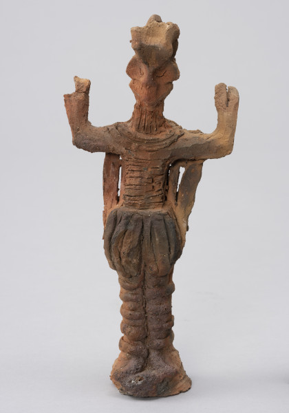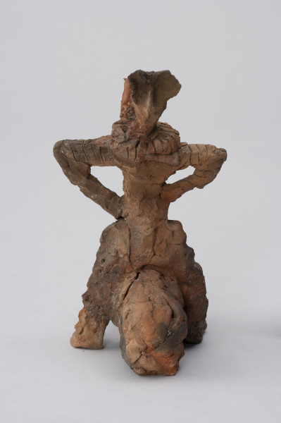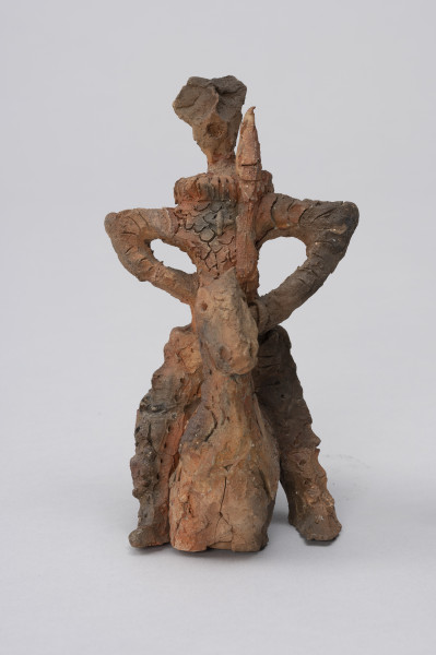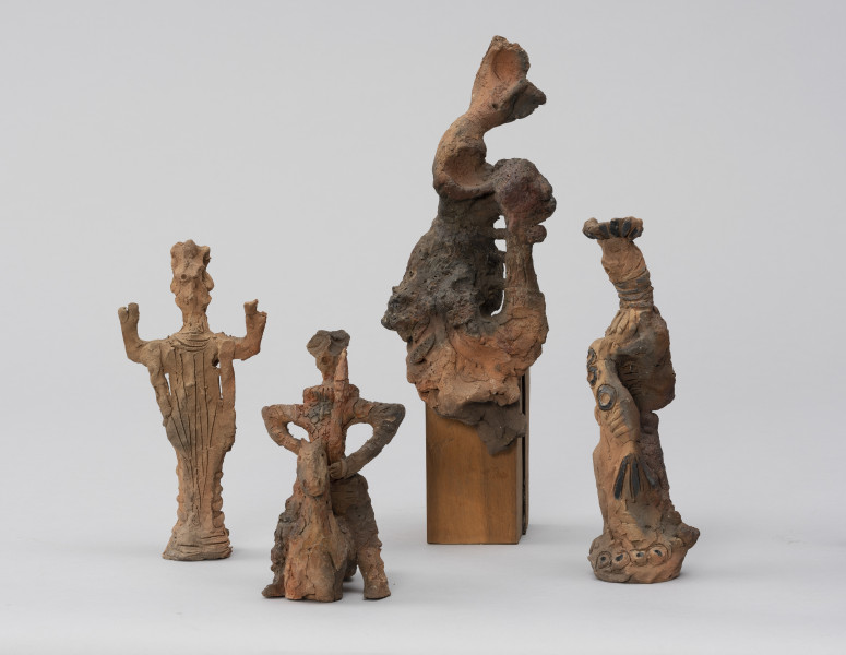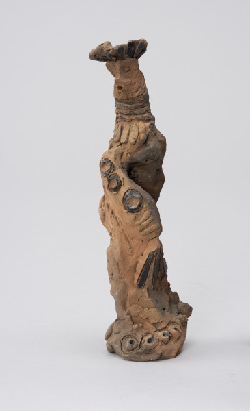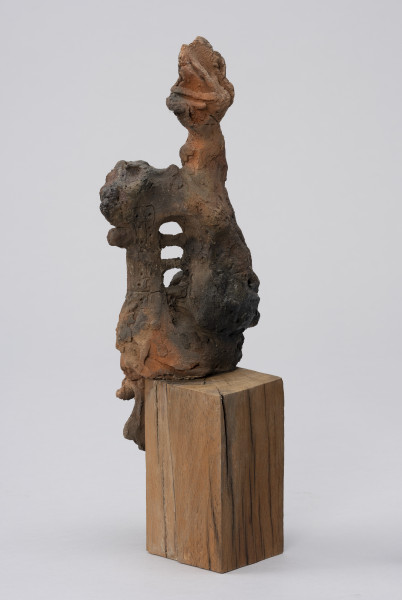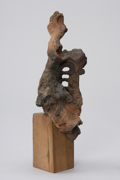 In the latter, 14 sarcophagi of the ducal family were discovered, filled with relics of Renaissance costumes. The event was not only noted by the national media, but also by local writers and visual artists. In December 1946, three months after the opening of the tin tombs, Sławomir Lewiński presented the painting Crypt with ashes of the Piasts in the Szczecin Castle during the Second Exhibition of Works by Members of the Association of Polish Artists in the City Museum. He returned to this theme in 1960, preparing a bust of Boguslaw X, modelled on 16th-century iconography, for the local primary school 36. Two years later, experimenting with firing techniques in a self-built ceramic kiln, he made the sculptural group Twilight of the Kings. He combined elements of Renaissance costume, dismembered as if on an archaeological site, with a primitive, semi-abstract form, a terracotta magma – smoky, parched and cracked like the bricks of Gothic buildings salvaged from the conflagration of war.