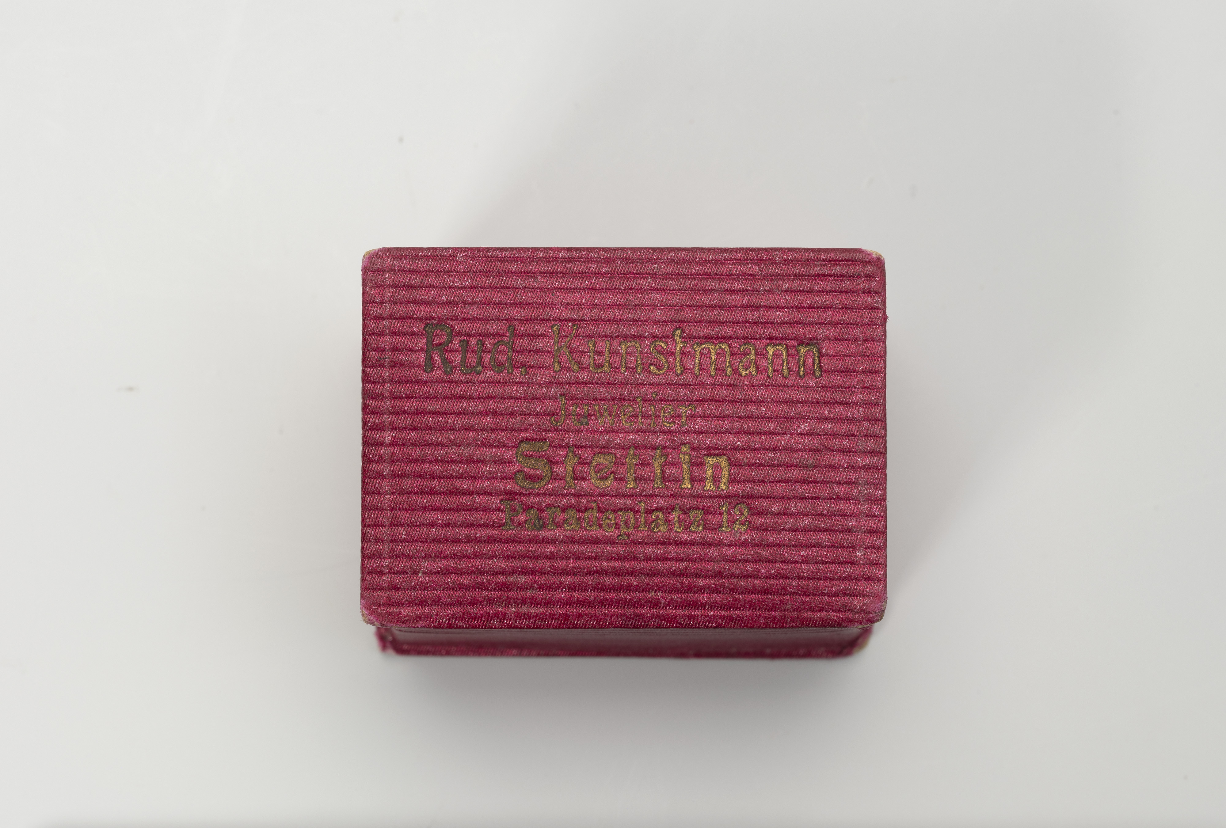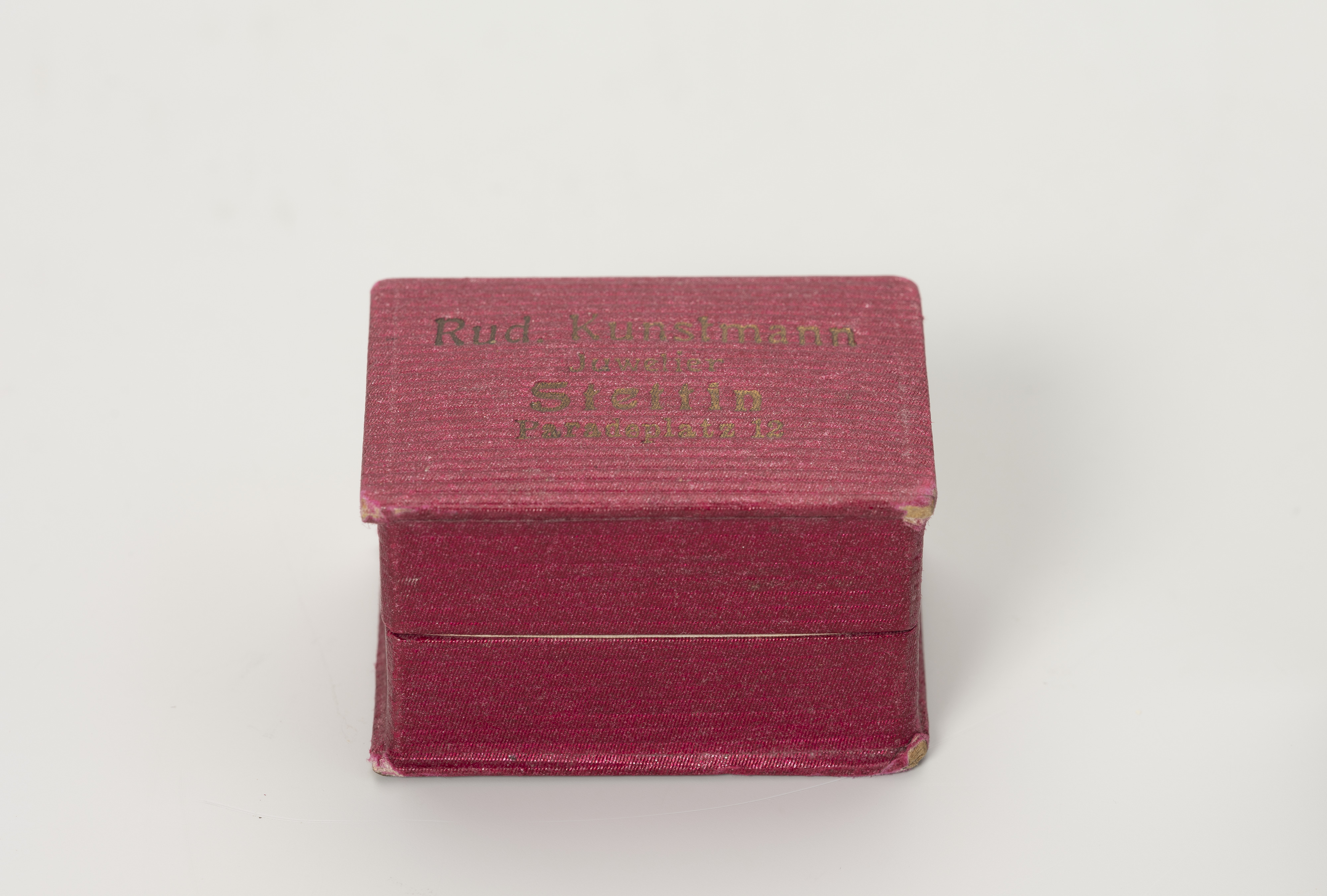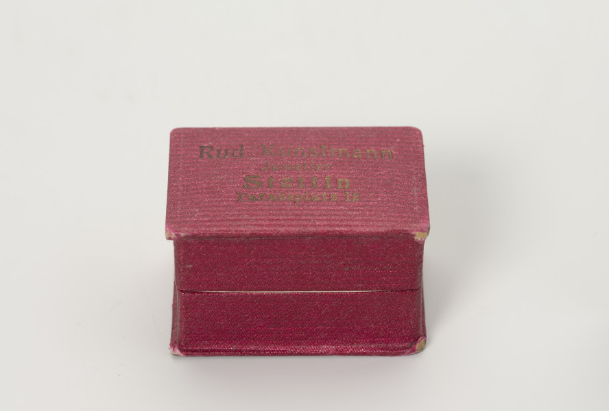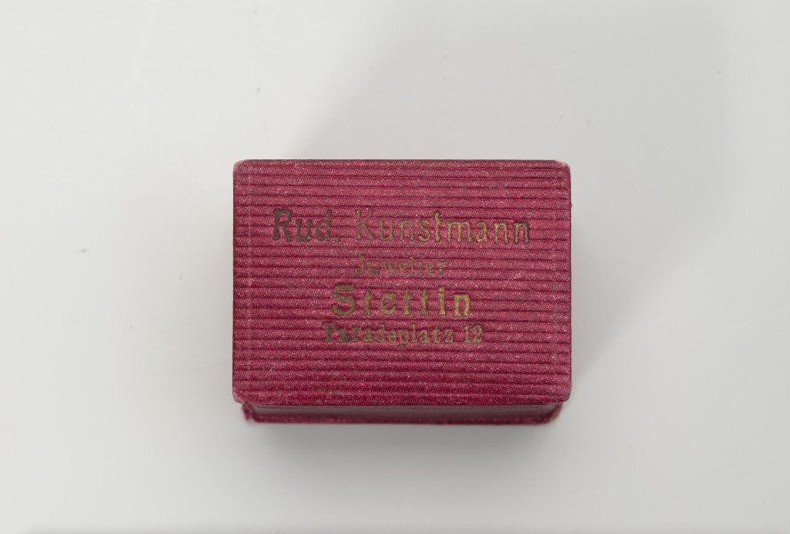 In the 19th century, Szczecin's Parade Square (Plac Parad, now Aleja Niepodległości), located near the Old Town, was one of the city's main thoroughfares. It was flanked on one side by the Baroque city gate (Brama Portowa, or Harbour Gate) and on the other by the White Parade Square (Biały Plac Parad, now Plac Żołnierza Polskiego), where in 1894, a monument to Emperor Wilhelm I was unveiled. Lined with an avenue of trees and surrounded by the newly built Pomeranian Landowners' Palace (Pałac Ziemstwa Pomorskiego), the Prussian Royal Post Office, tenement houses, and department stores, the area became, at the turn of the 19th and 20th centuries, an attractive location for shops and service establishments seeking to attract a wealthier clientele. The young goldsmith and jeweller Rudolf Kunstmann moved his business here in 1903, to Paradeplatz 12. The city's address books show that he appeared on Szczecin's market in 1896, attempting to run a jewellery business first at Mühlenbergstraße 12 (Hetmana Stefana Czarnieckiego Street), in 1897 at Papenstraße 16 (Staromiejska Street), and later, from 1898 to 1902, at Schulzenstraße 26-28 (Soltysia Street). In 1934, he sold the establishment on Paradeplatz to another goldsmith, Carl Kesseler, who continued to operate there until at least 1943. Kunstmann himself, on the other hand, moved to the village of Finkenwalde (now Zdroje – the right bank district of Szczecin) to a townhouse on Mühlenstraße A6. From the occasional advertisements placed in magazines and the more extensive entries in address books, it is clear that Kunstmann was not only a goldsmith and jeweller, but also a master goldsmith and a sworn expert in the field. He offered gold and silver jewellery, ladies' watches and men's watches with top-quality mechanisms, as well as a large selection of wedding, christening and commemorative gifts. The establishment also provided engraving and repair services. Malgorzata Peszko