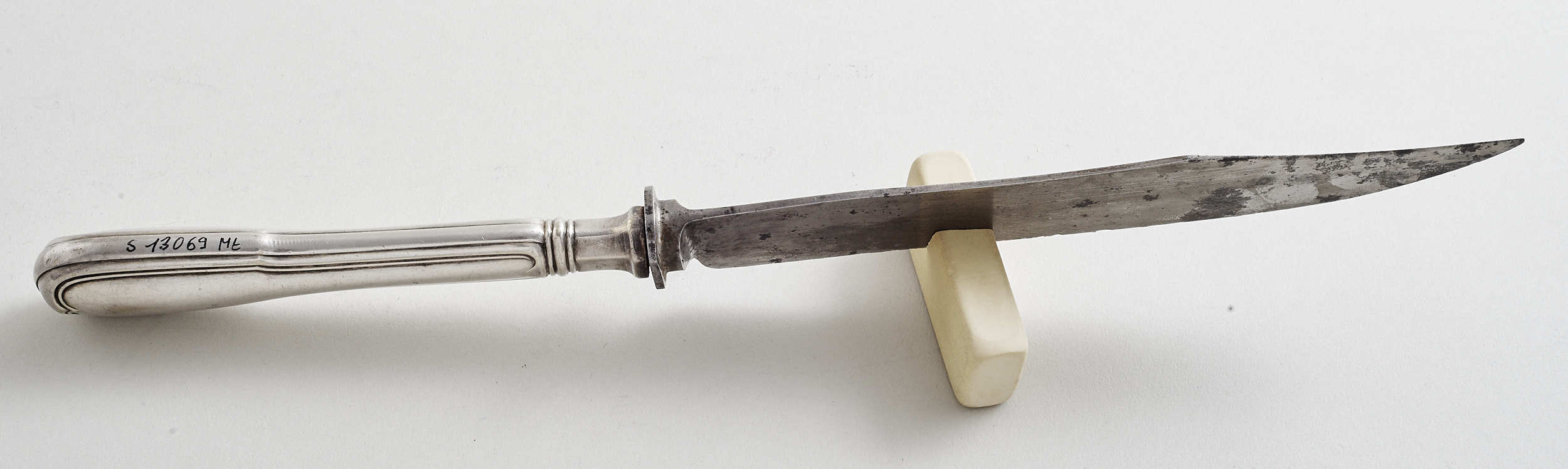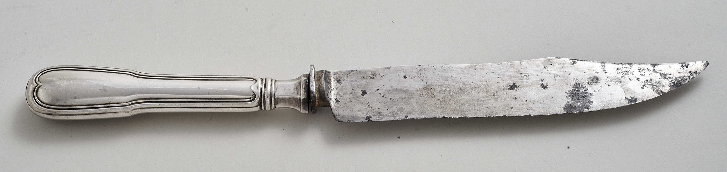 A large knife, together with the spoon and fork, is a part of what is known as table centerpiece cutlery. The cutlery is used to scoop food from bowls or platters onto smaller plates prepared for all the guests at the table.