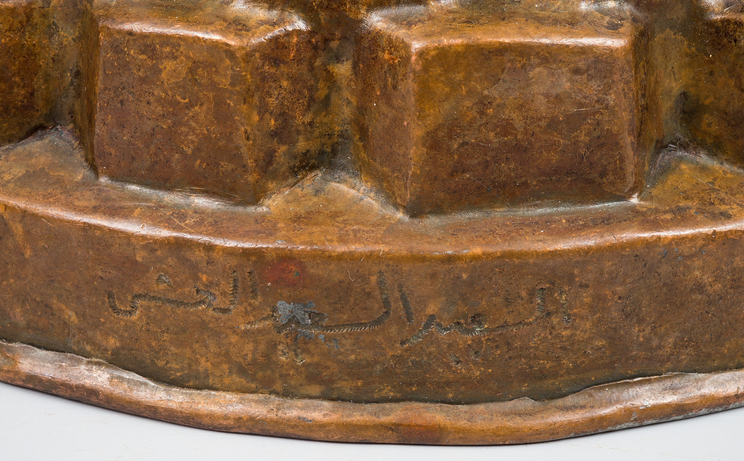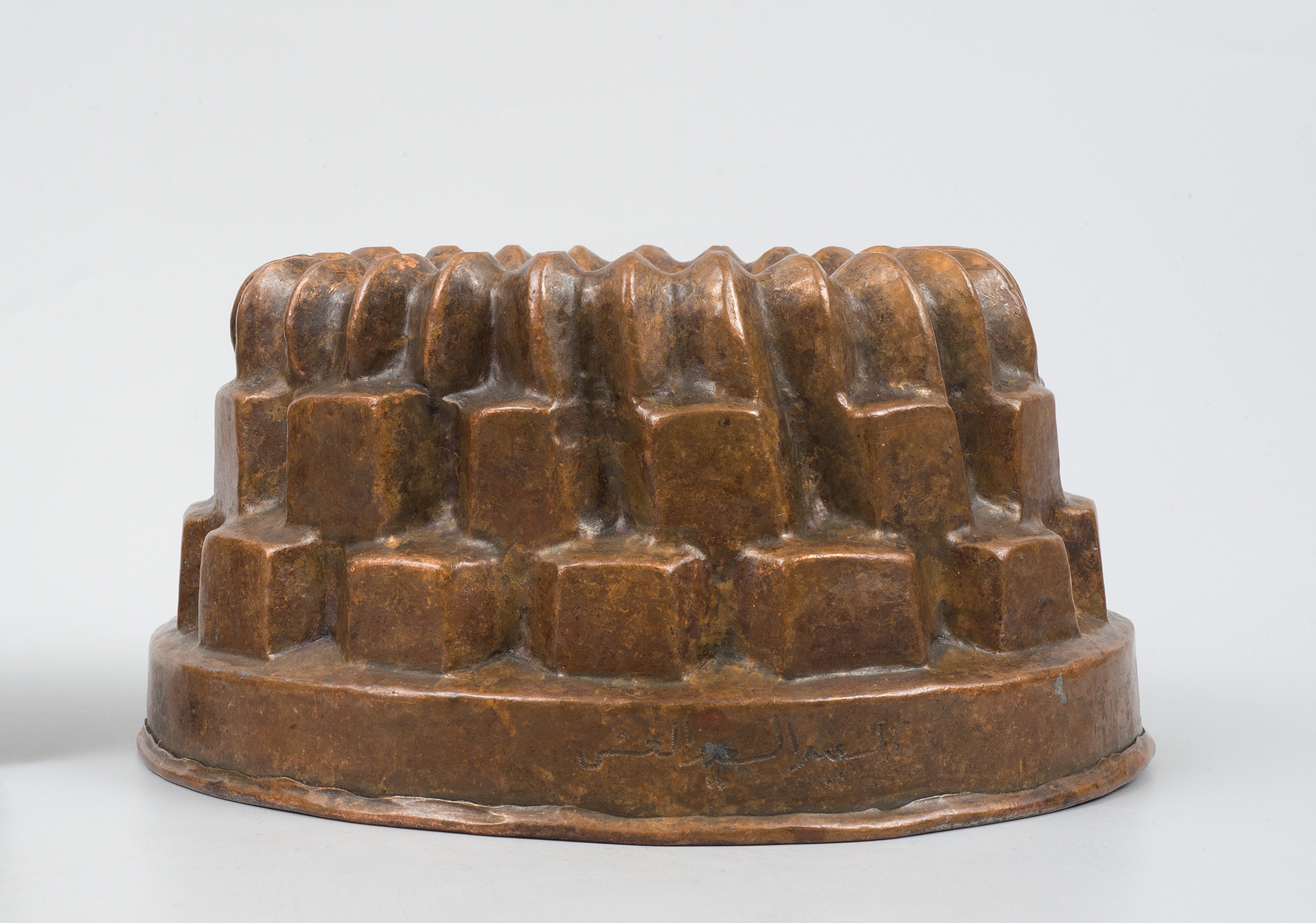 Niska forma stożkowata, ozdobiona motywem koszyka oraz trzema poziomami dekoracji nad cokolikiem. Na powierzchni znajdują się arabskie napisy oraz półokrągła punca. Kominek jest luźno osadzony.