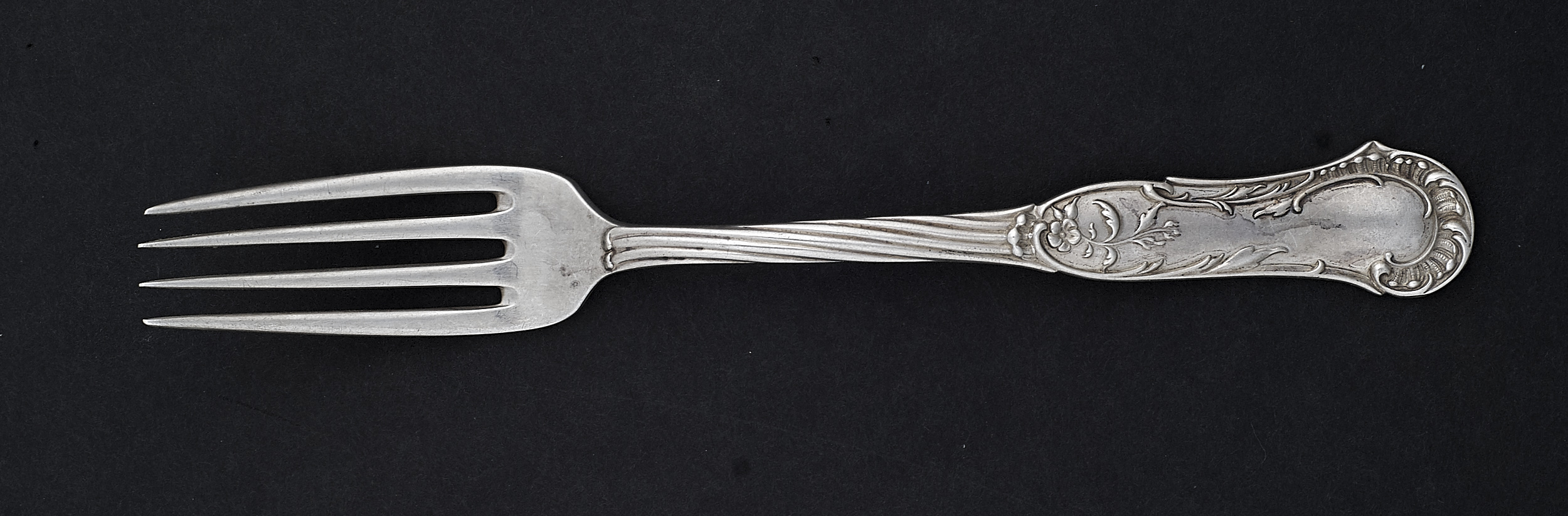 Widelec pochodzi z kompletu na sześć osób liczącego łącznie 36 elementów. W jego skład poza sześcioma widelcami stołowymi wchodzi: