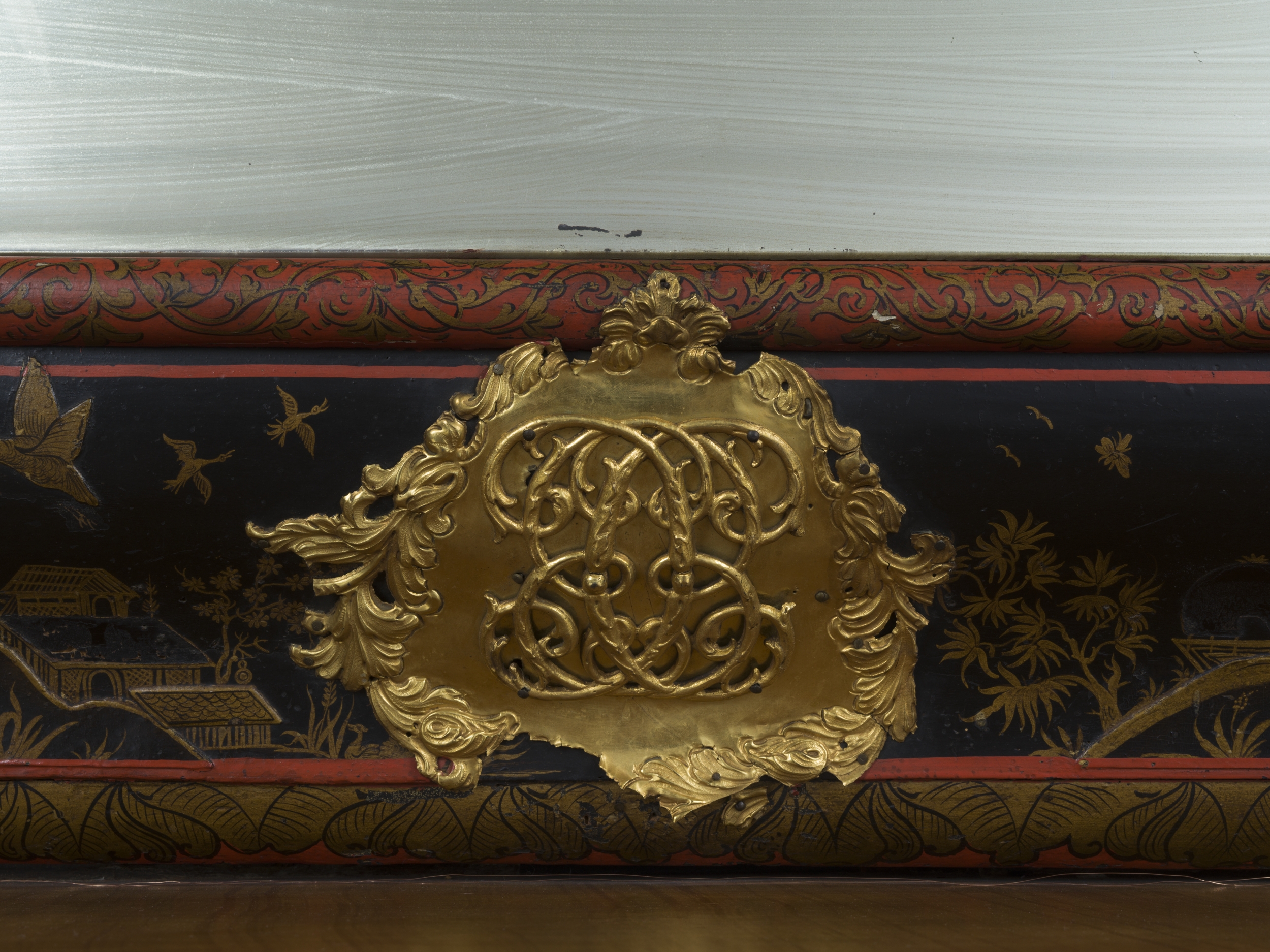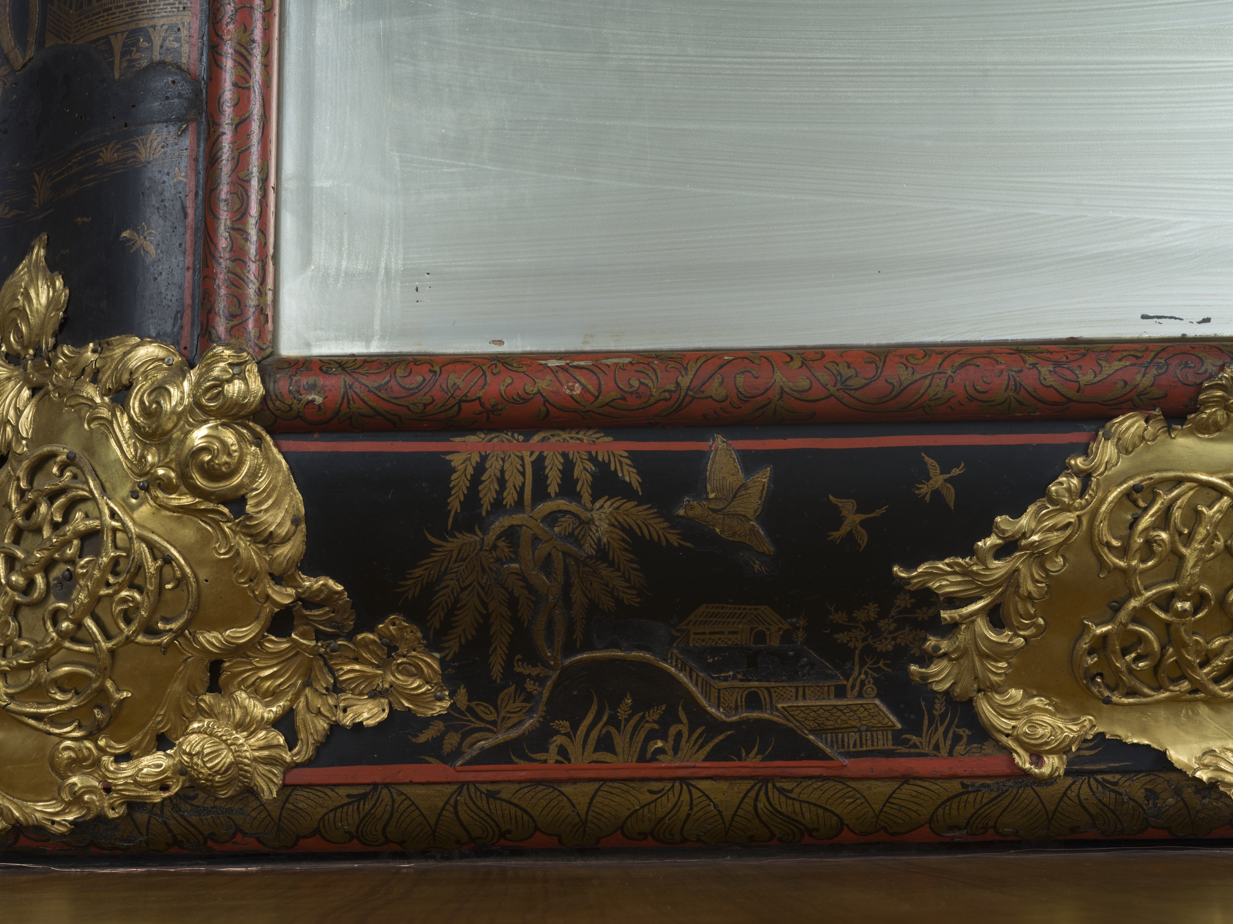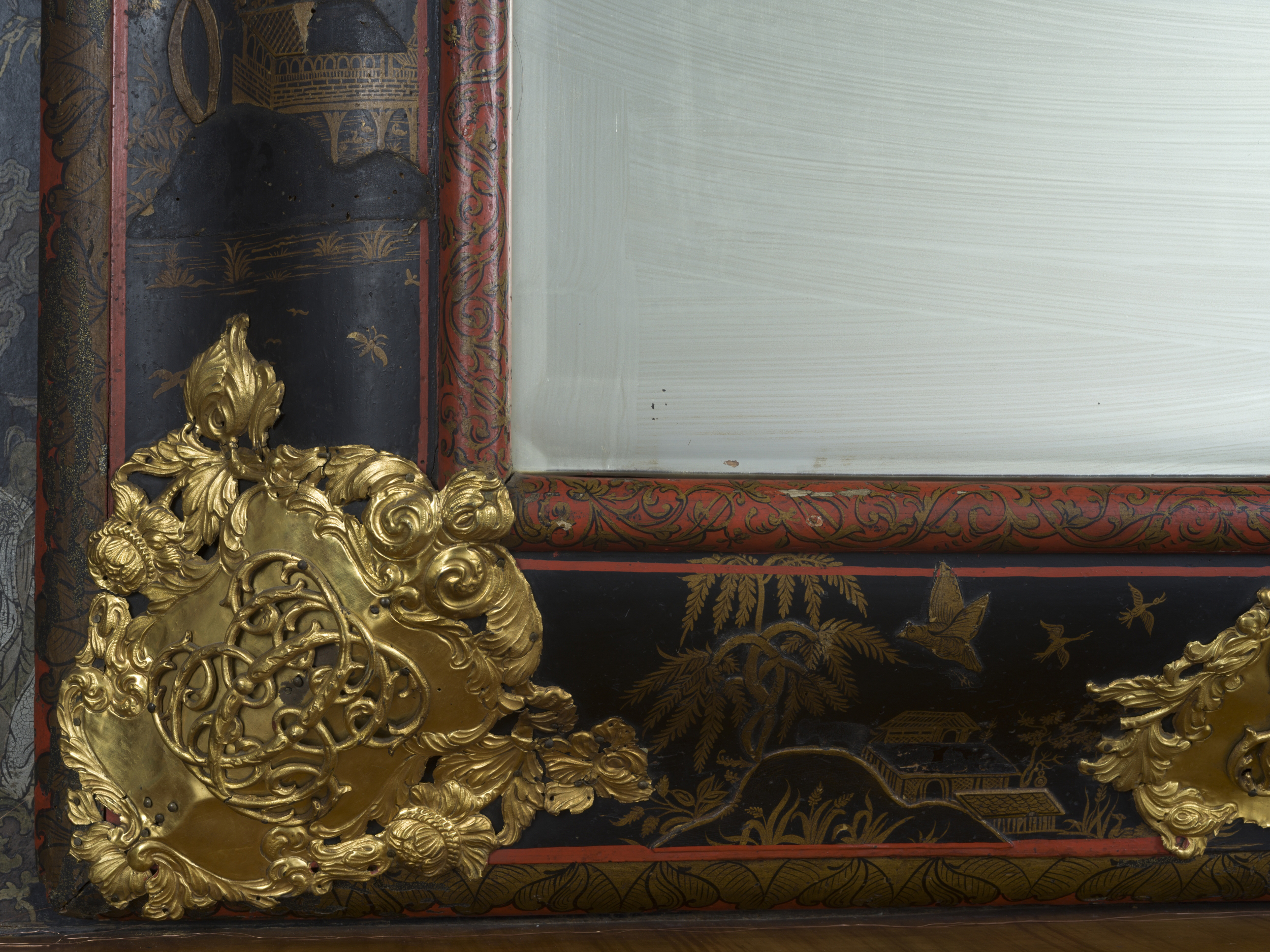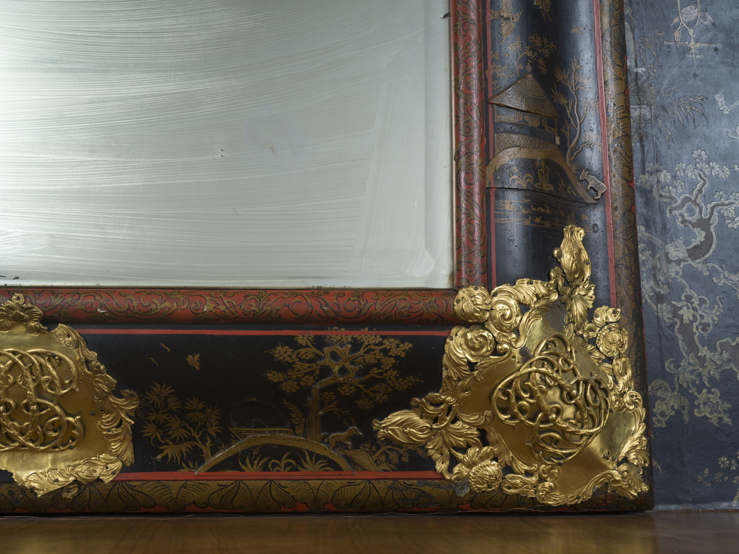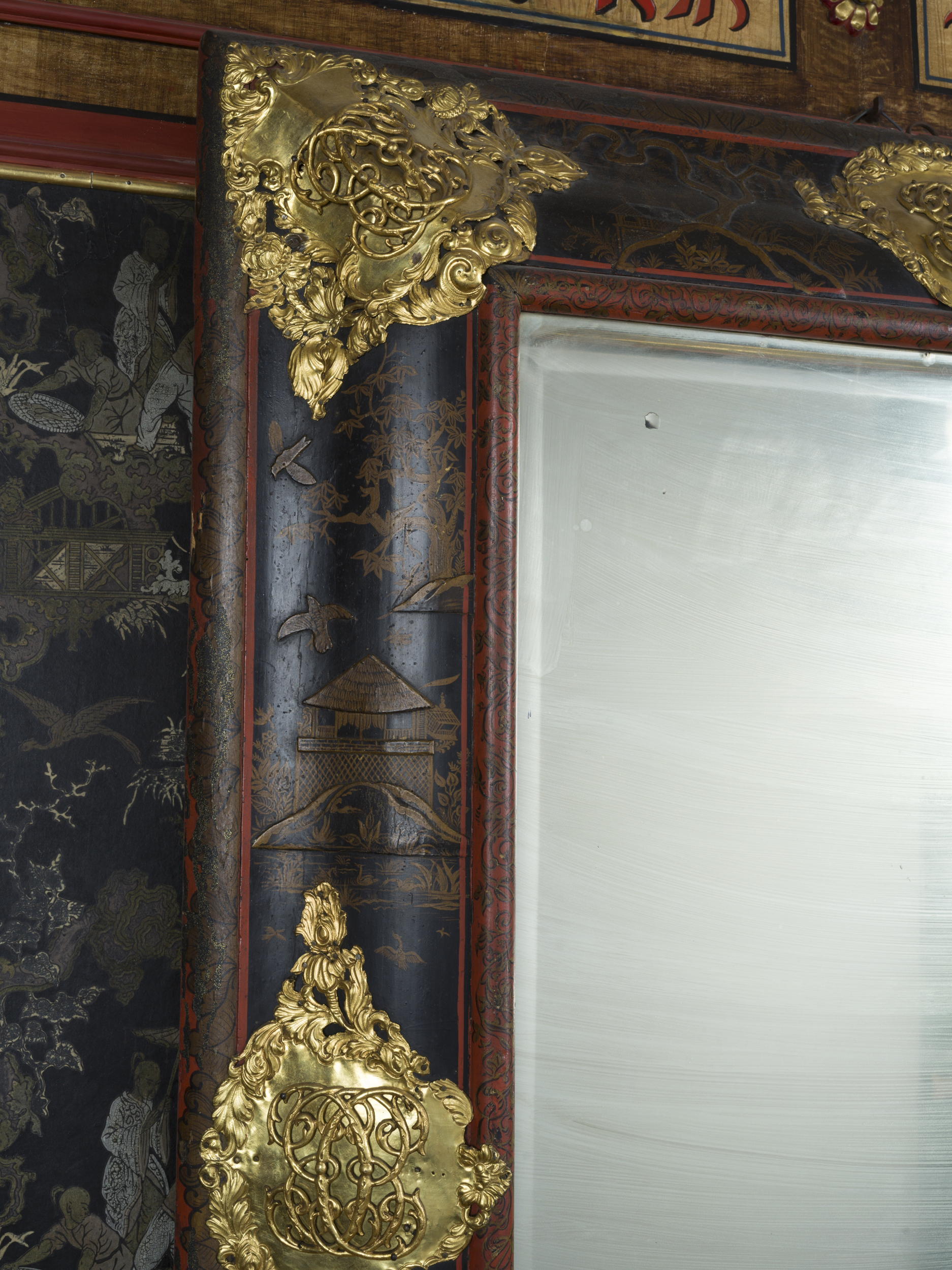 Lustro stanowi fragment pochodzącego z 1. połowy XIX wieku wyposażenia Pokoju Cichego na piętrze korpusu pałacu wilanowskiego, będącego wówczas częścią Pokoi Chińskich urządzonych według koncepcji Stanisława Kostki Potockiego przez Aleksandrę z Lubomirskich Potocką i jej syna Aleksandra. Apartament chiński nie miał funkcji mieszkalnej, a stanowił oprawę dla ekspozycji kolekcji sztuki i rzemiosła Dalekiego Wschodu. Z kolei w drugiej połowie XIX wieku lustro znalazło miejsce w sypialni apartamentu mieszkalnego w stylu chińskim, urządzonego na piętrze południowego skrzydła – obecnie jest to Pokój Chiński z Kasetonami. Wymiary lustra przemawiają za jego funkcją jako lustra kominkowego, czyli do umieszczenia nad gzymsem kominka, i w tym miejscu także można oglądać je obecnie.