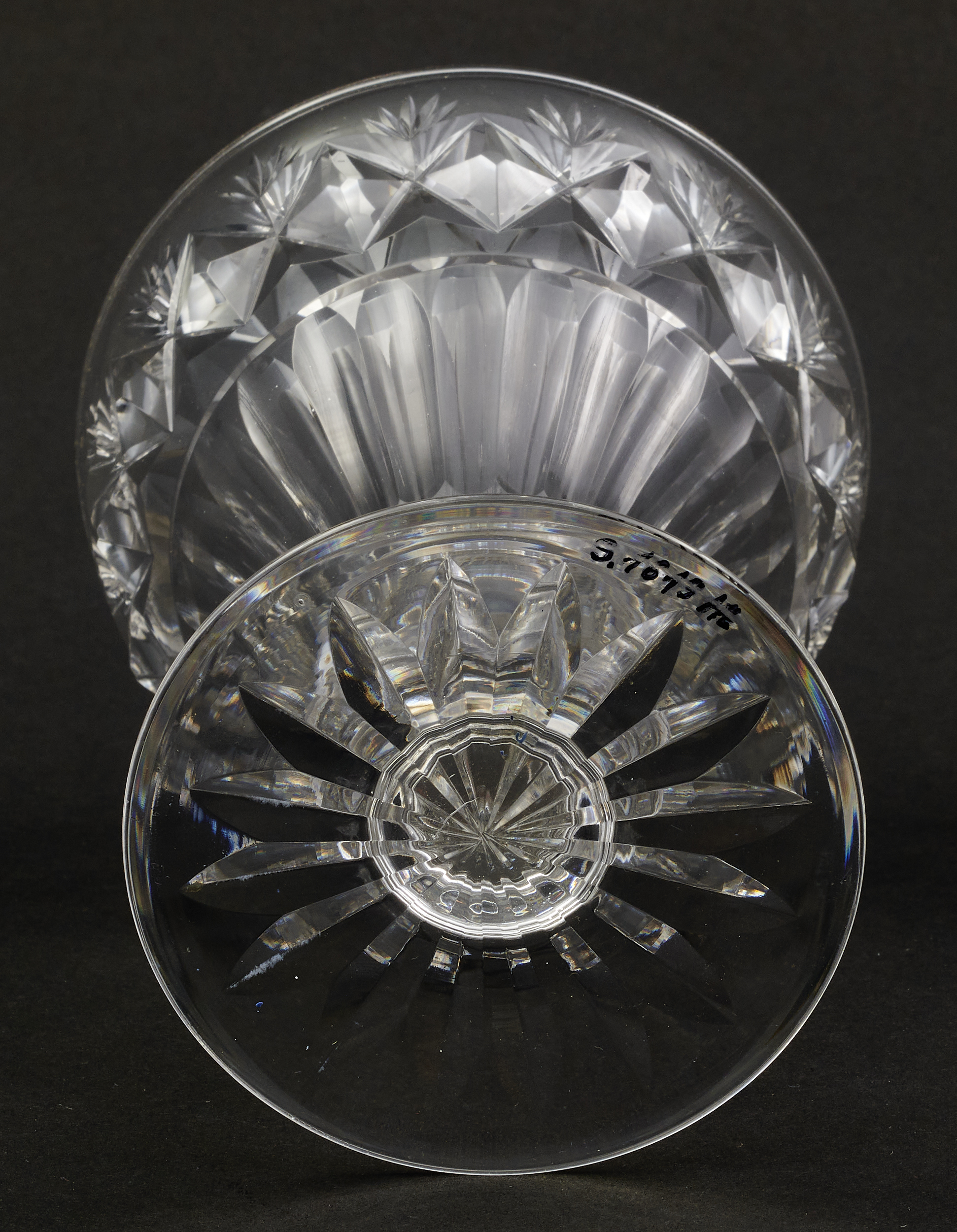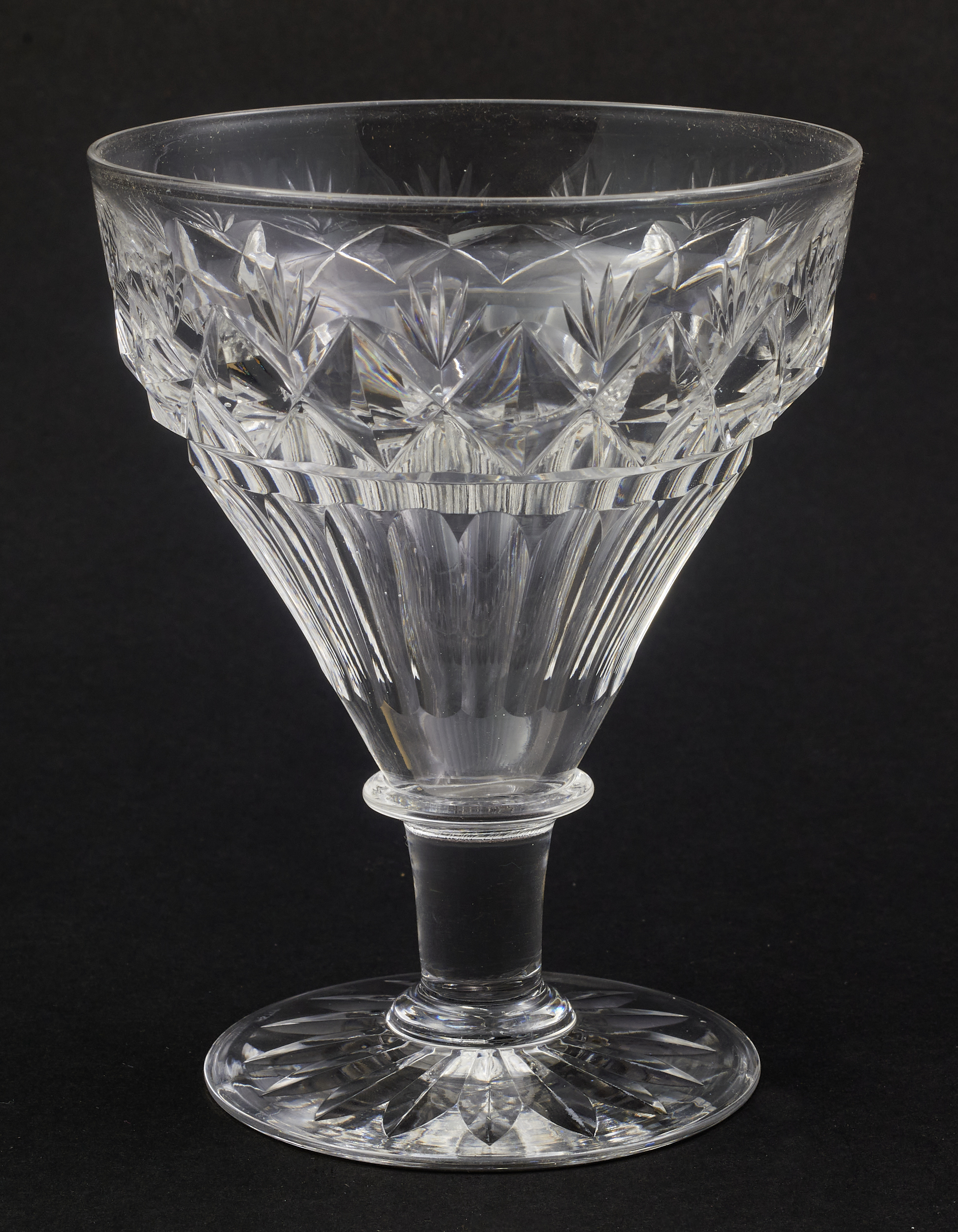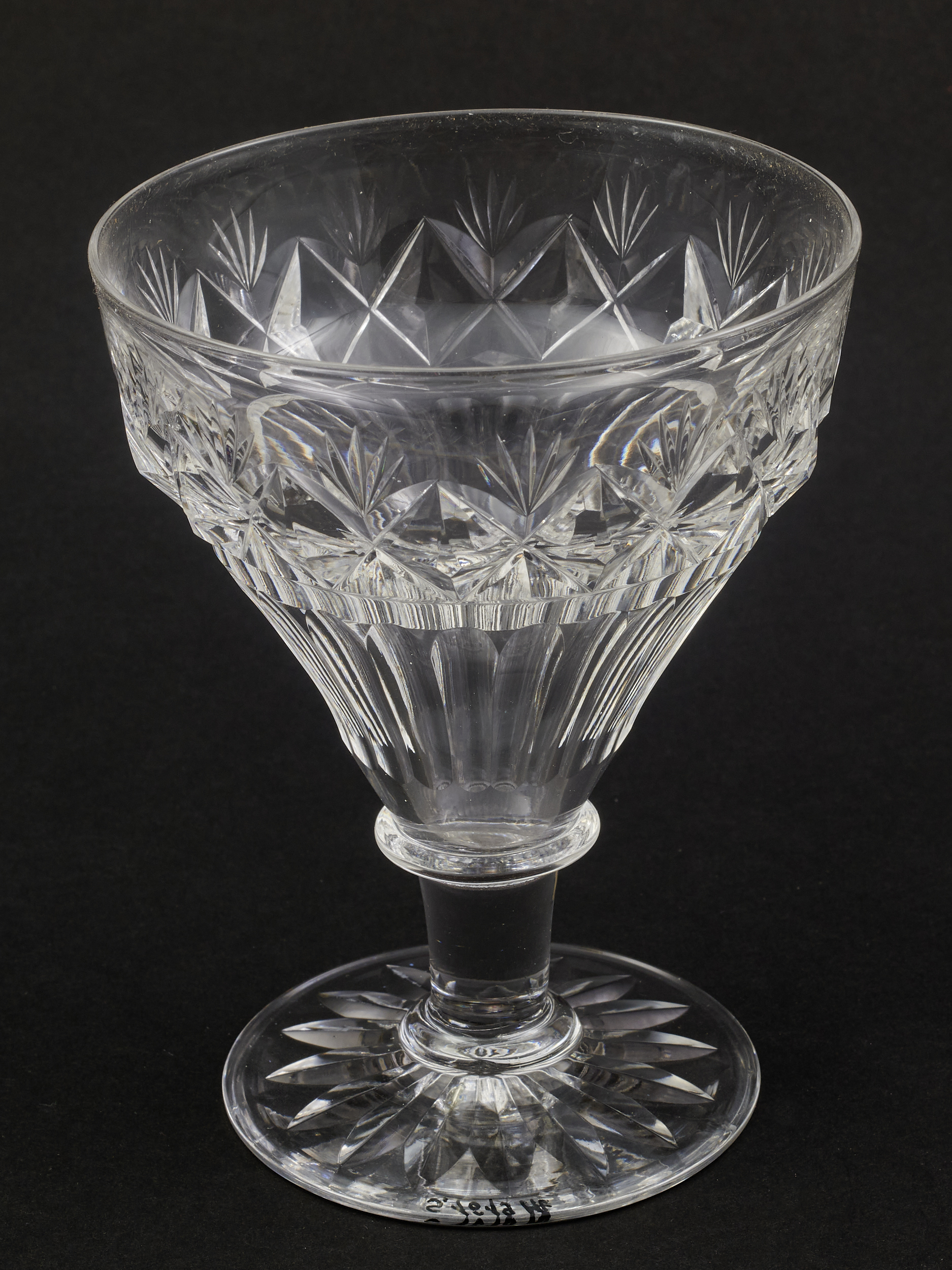 Kieliszek duży, wykonano ze szkła kryształowego. W zbiorach łańcuckich znajduje się także jeszcze pięć takich kieliszków. Zostały wykonane na przełomie XIX-XX wieku w Anglii, w stylu secesyjnym.