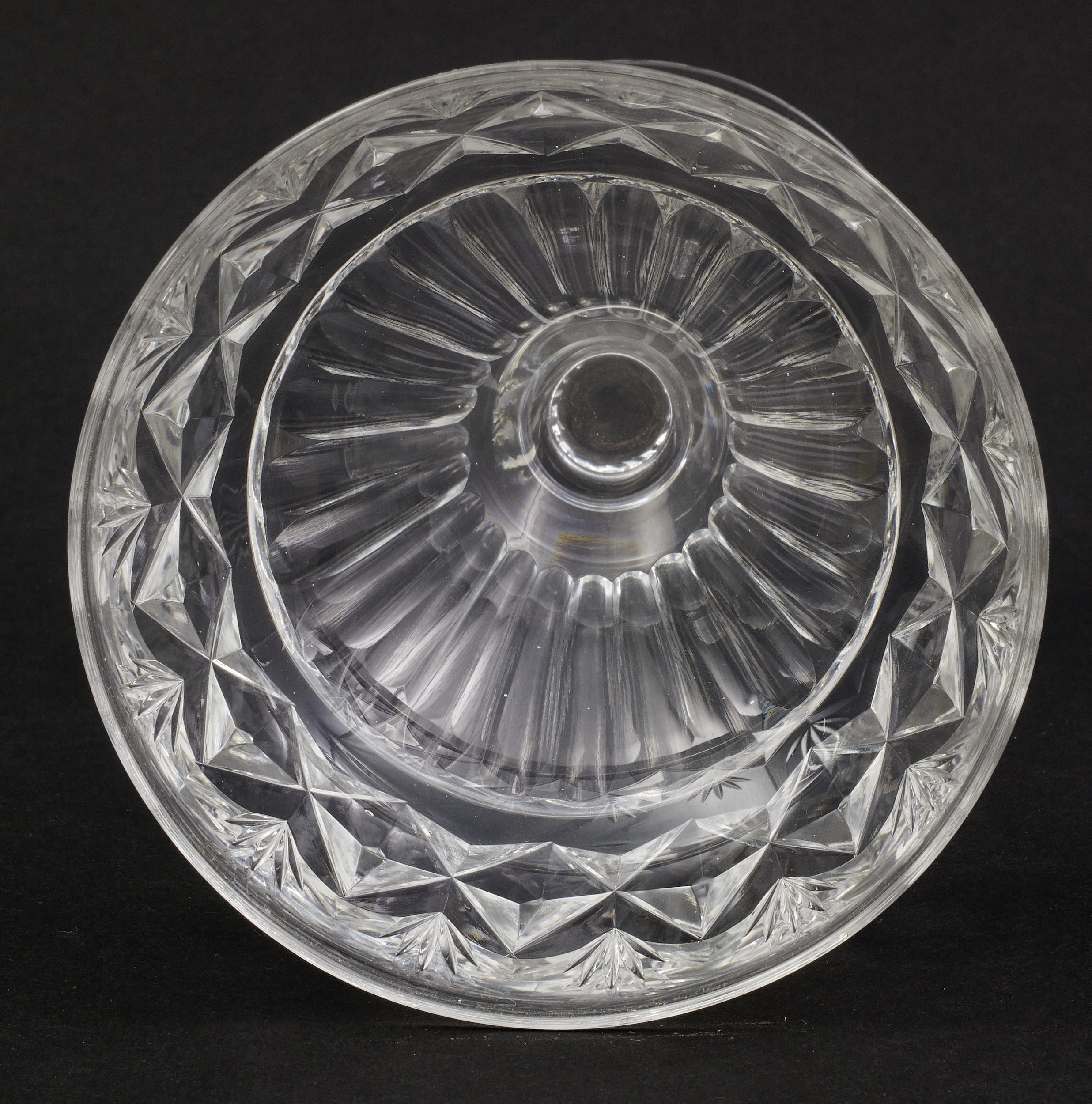 Kieliszek okrągły, ozdobiono szlifowaną dekoracją rośliną. Stopa okrągła, nóżka krótka i szeroka, zakończona pierścieniem, na którym osadzona stożkowata czara. Spód stopy dekorowany płytkim szlifem o motywie wielopłatkowego kwiatka.