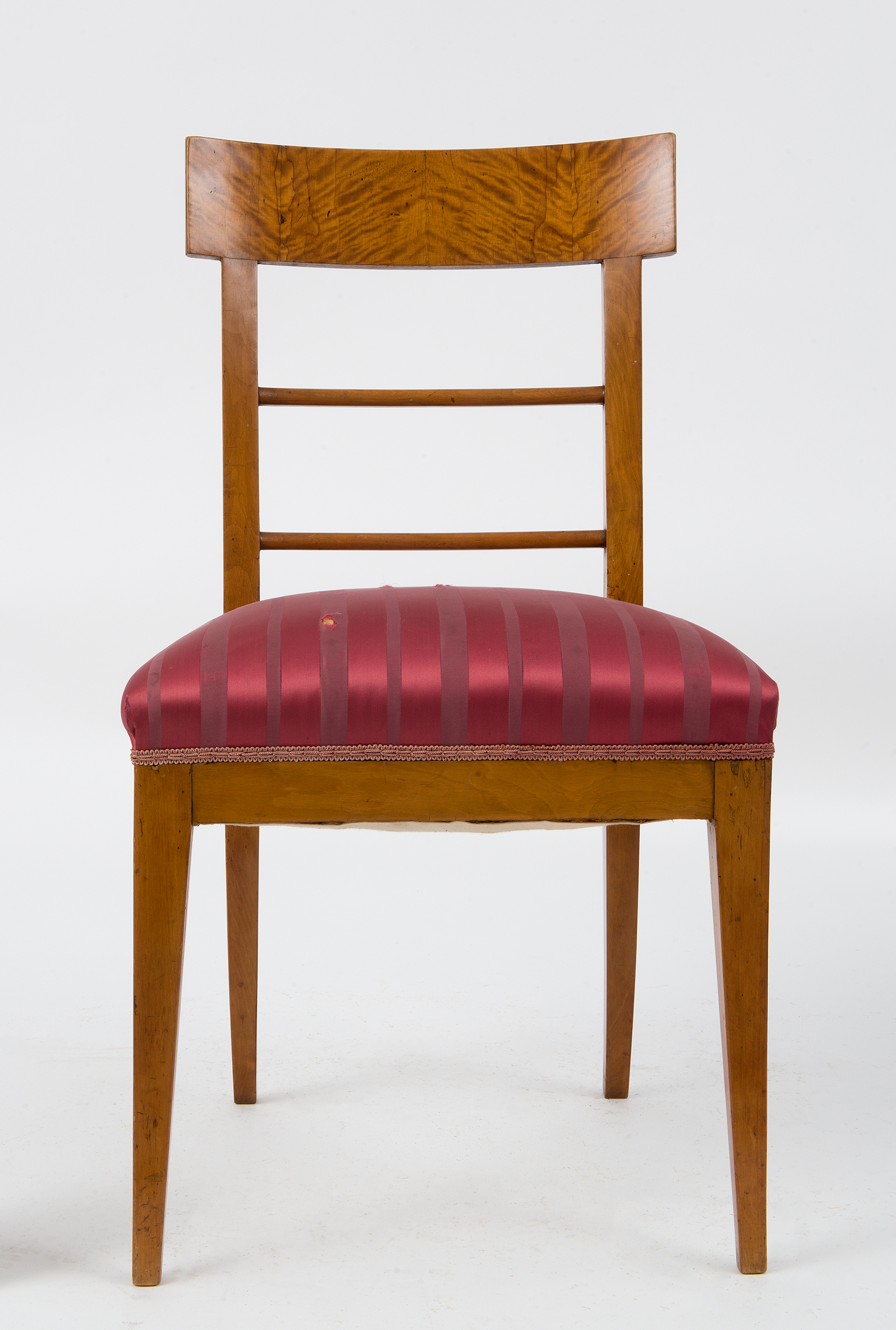 Krzesło stanowi przykład popularnego w drugiej ćwierci XIX wieku stylu biedermeier, wywodzącego się z klasycyzujących form stylu cesarstwa, ale ponad ciężką, pompatyczną, imperialną estetykę przedkładającego prostotę, oszczędność formy, funkcjonalność i wygodę. Charakterystyczny jest tutaj kontrast optycznie ciężkiego, solidnego, tapicerowanego siedziska z lekkim, ażurowym oparciem. Z profilu widać natomiast natychmiast antyczną inspirację klasycznym greckim krzesłem klismos, znanym z malarstwa wazowego i wielokrotnie przetwarzanym w różnych epokach.