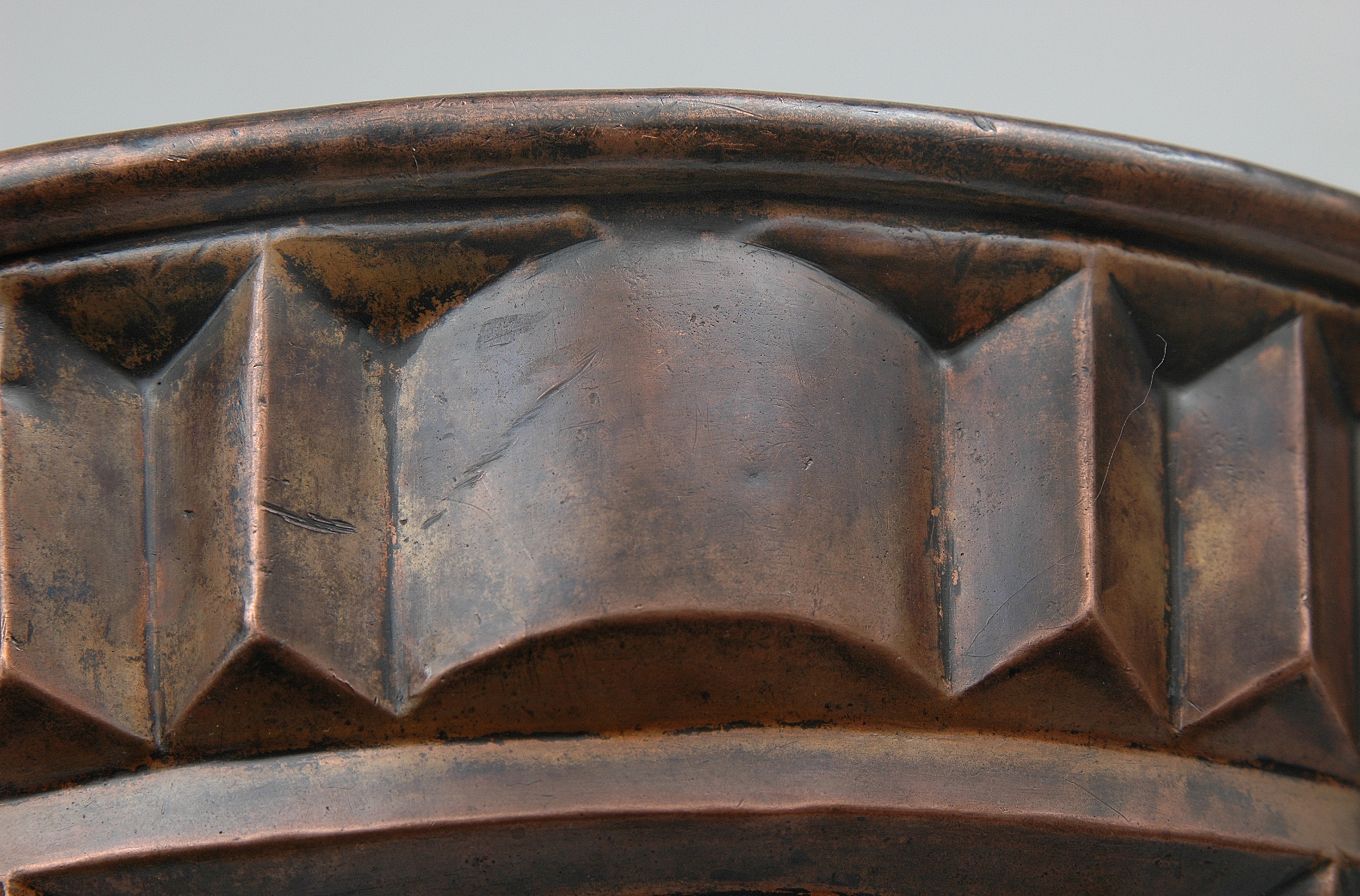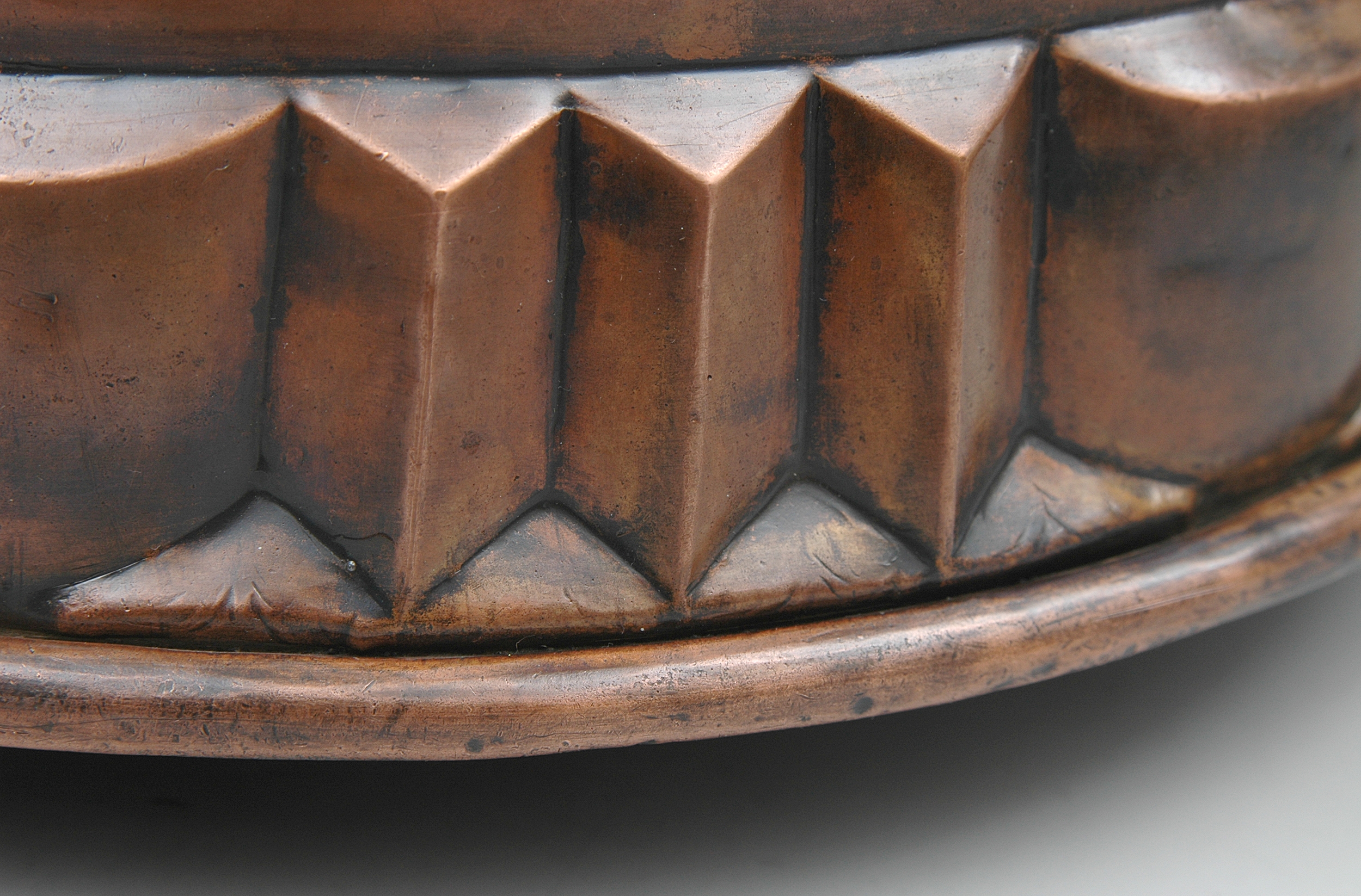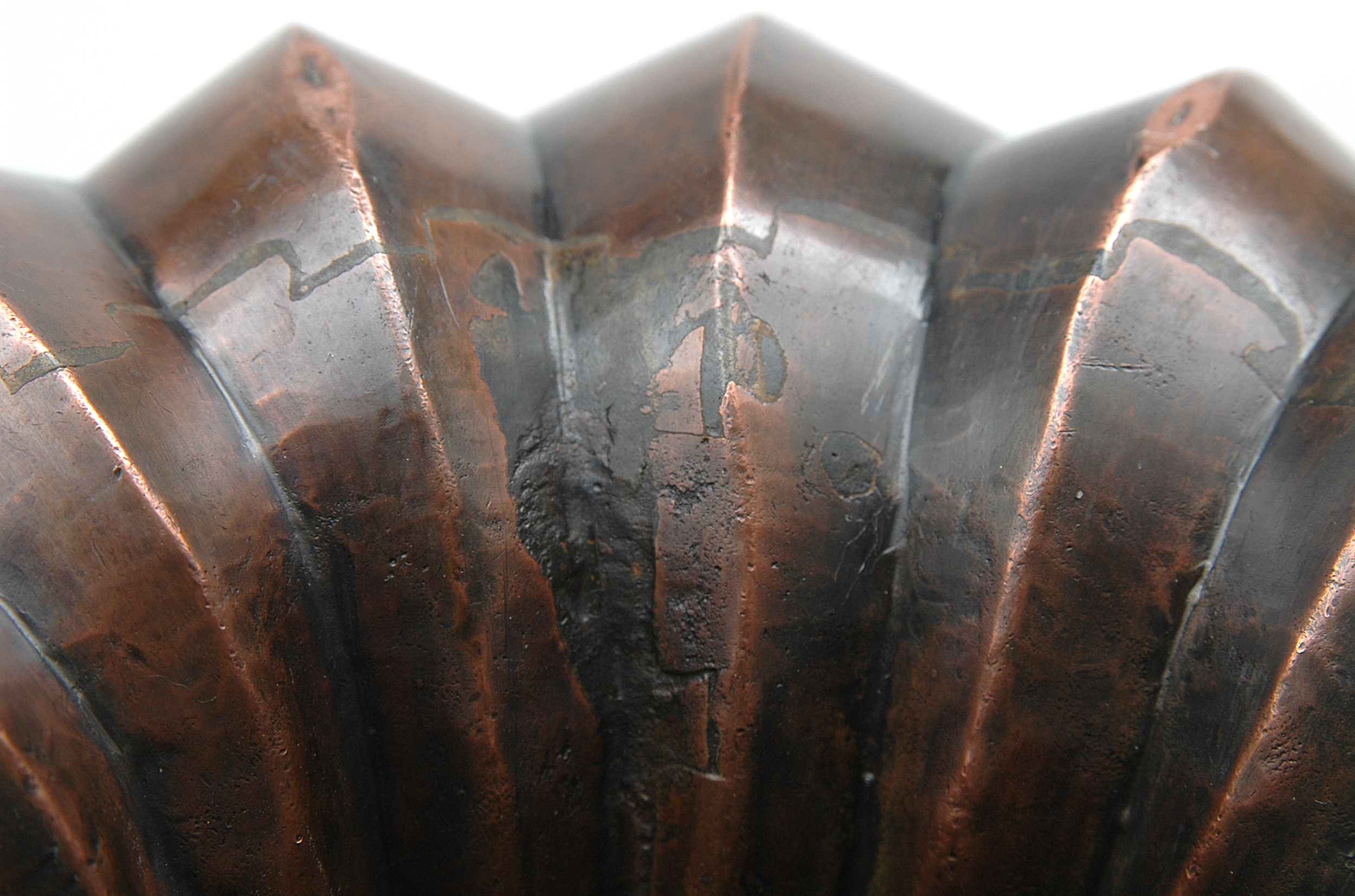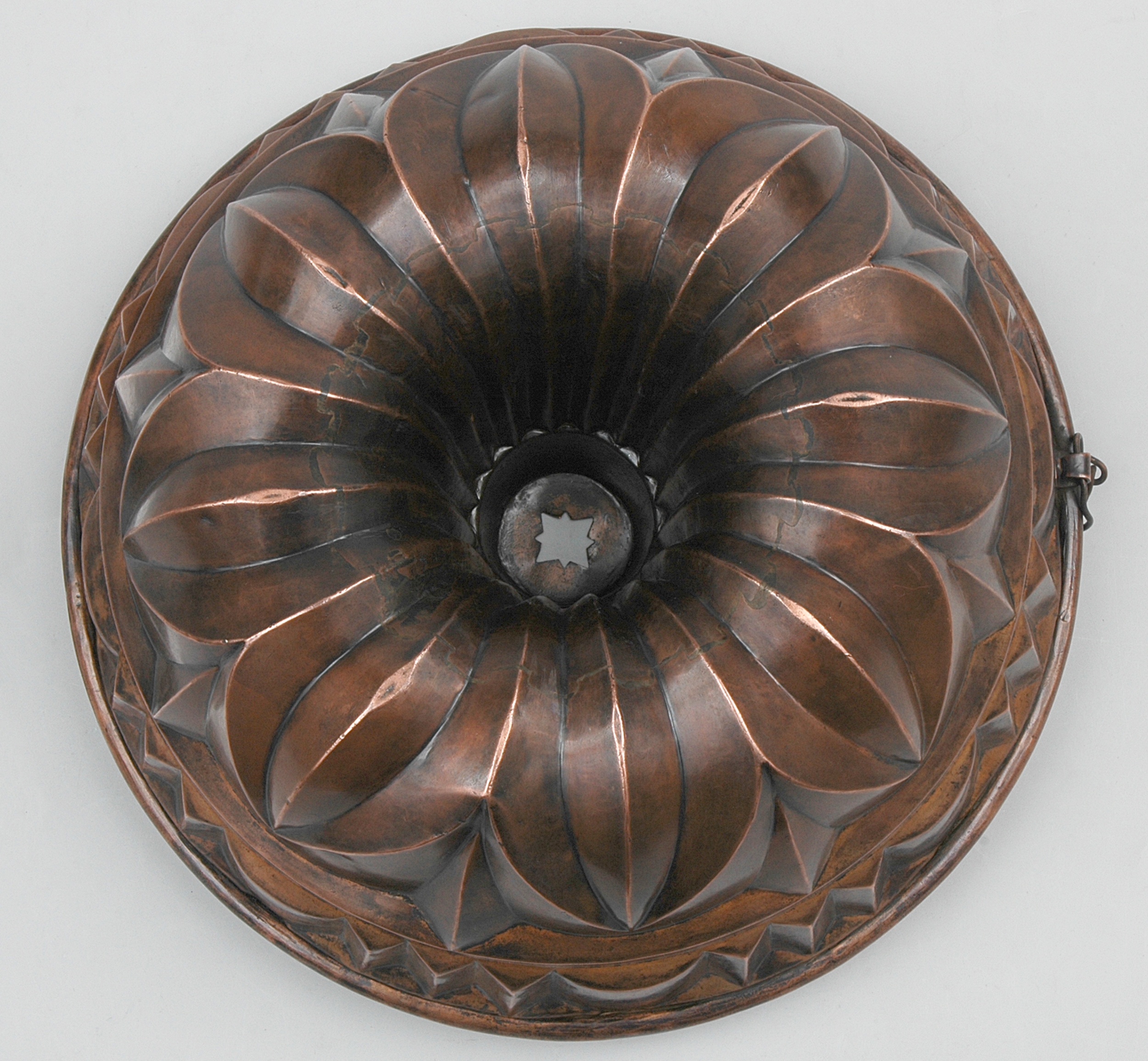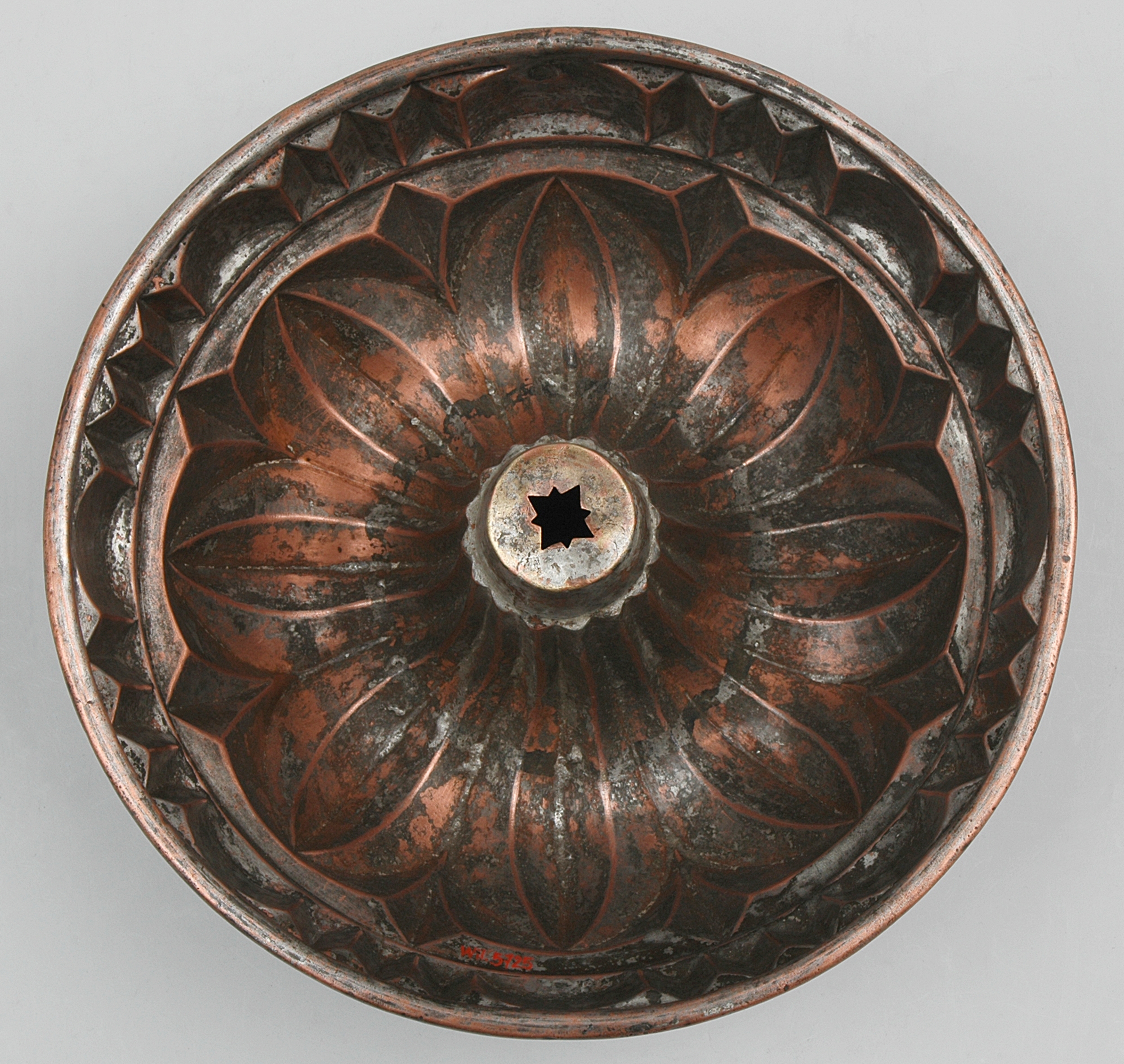 Forma do pieczenia ma półkulisty kształt z centralnym wgłębieniem. Powierzchnię płaszcza rozdzielono w połowie wysokości wyraźnym uskokiem. Górna część została uformowana w ośmioczęściową rozetę, której płatki podzielono na cztery segmenty z wypukłymi krawędziami. Tuż poniżej uskoku, wzdłuż krawędzi, znajduje się dekoracyjny pas z trzech ostrosłupów oddzielonych półwałkami. Do jednego z nich przymocowano uchwyt z kółkiem, umożliwiający zawieszenie formy. Forma jest wydrążona pośrodku, czyli ma tzw. komin.