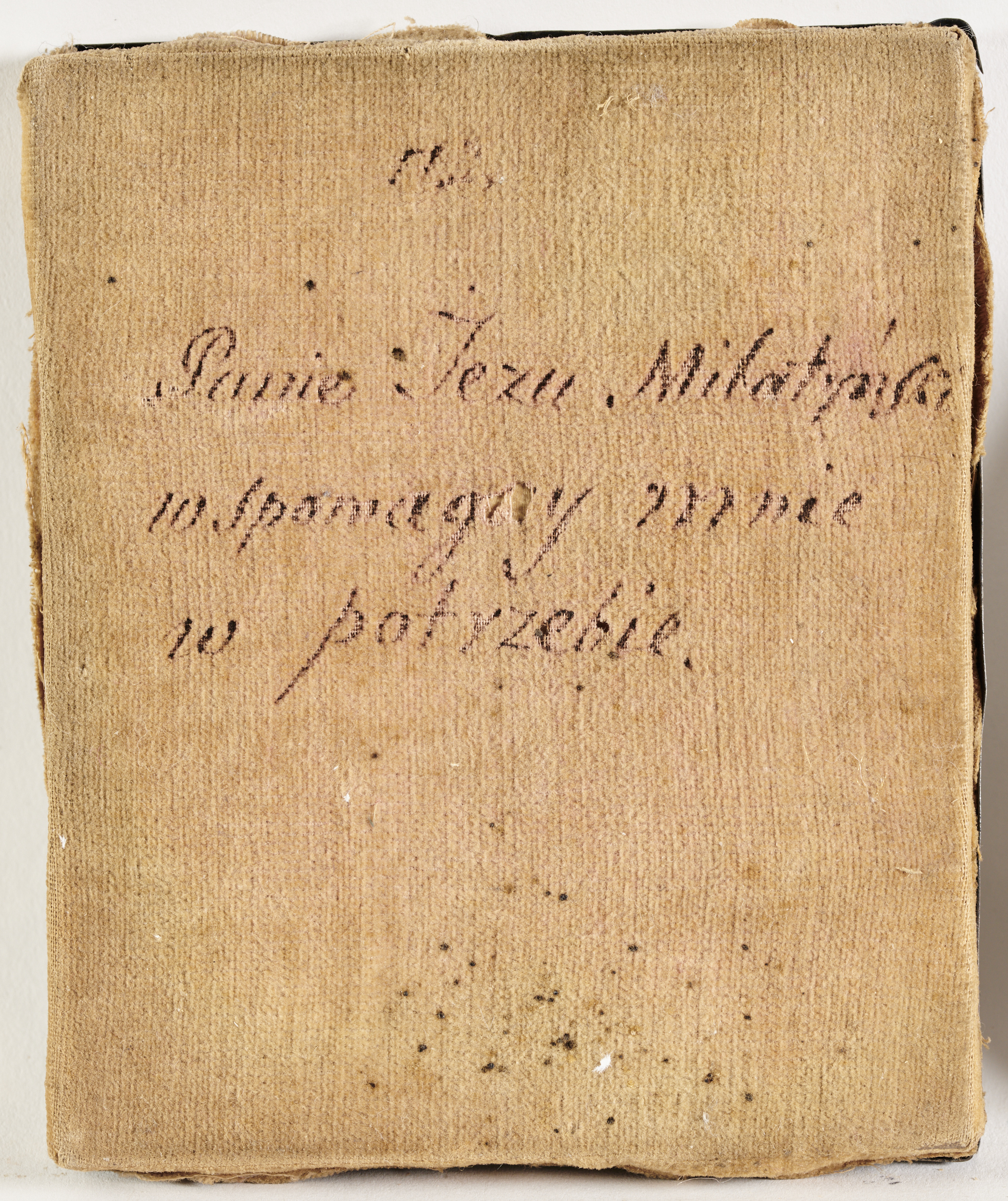 drewno, zaprawa kredowa, farba olejna, aksamit, srebro, złoto