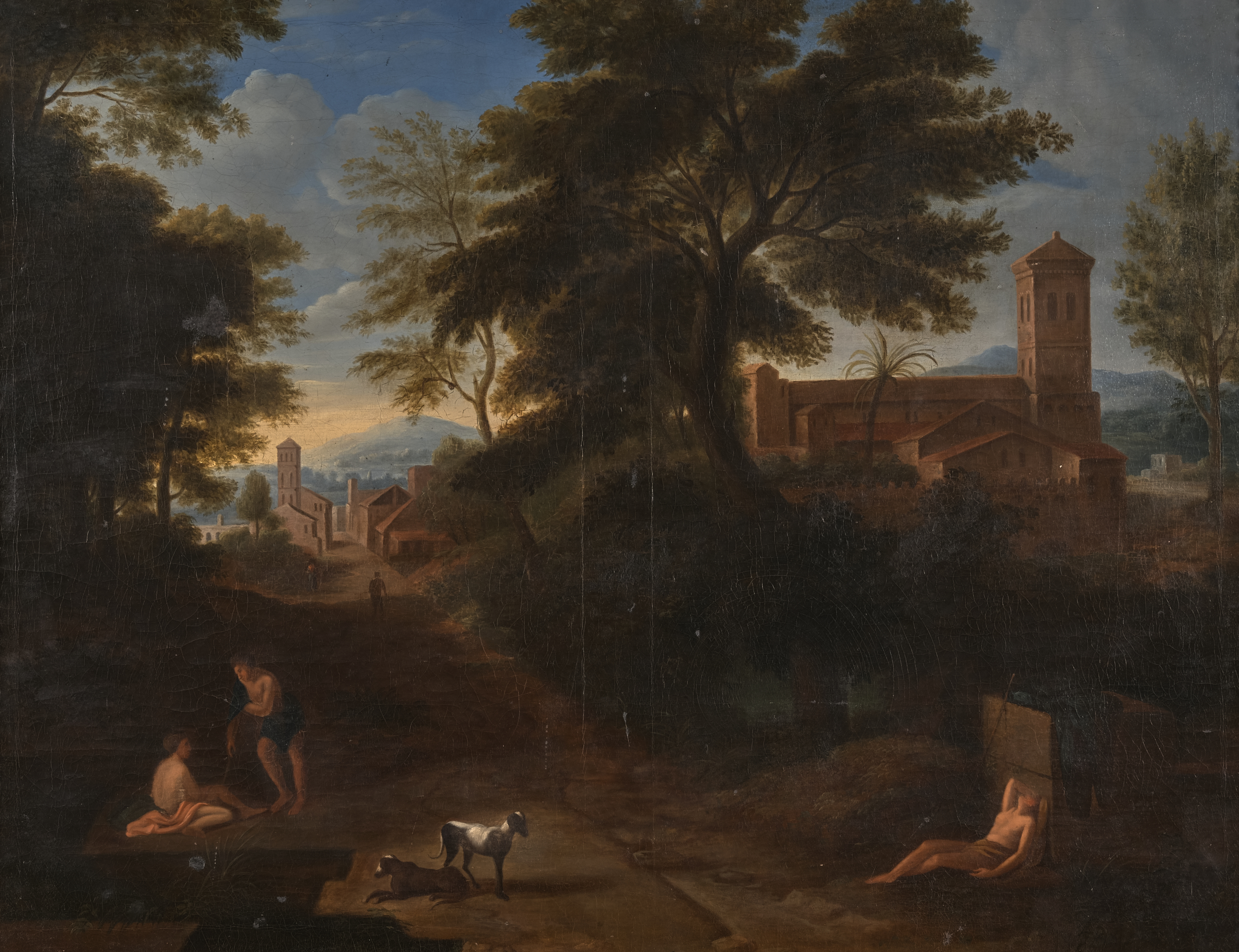 Obraz „Widok kampanii rzymskiej” pochodzi z kolekcji rodziny Potockich, dawnych właścicieli zamku w Łańcucie. Przedstawienie nawiązuje do heroizowanych krajobrazów XVII stulecia. W centrum polna droga biegnąca wśród drzew. Po obu stronach drogi nagie postacie pasterzy, ożywiające obraz. Na środku drogi widnieją dwa psy. W głębi podłużna budowla z wieżą. W tle jasnożółtego nieba widoczne błękitne góry.