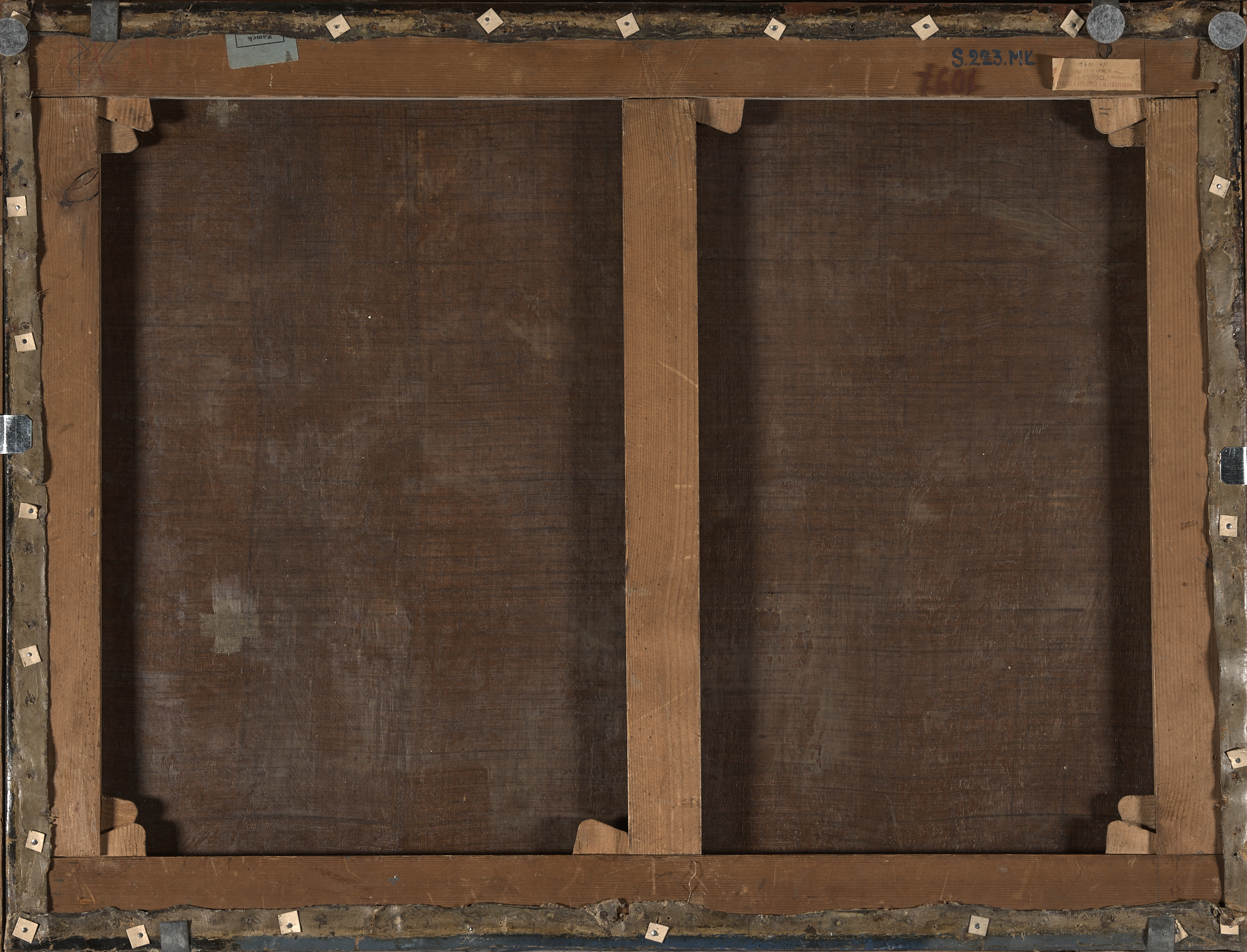 Obraz ujęty w szeroką drewnianą, złoconą ramę z napisem „Phidanza”.