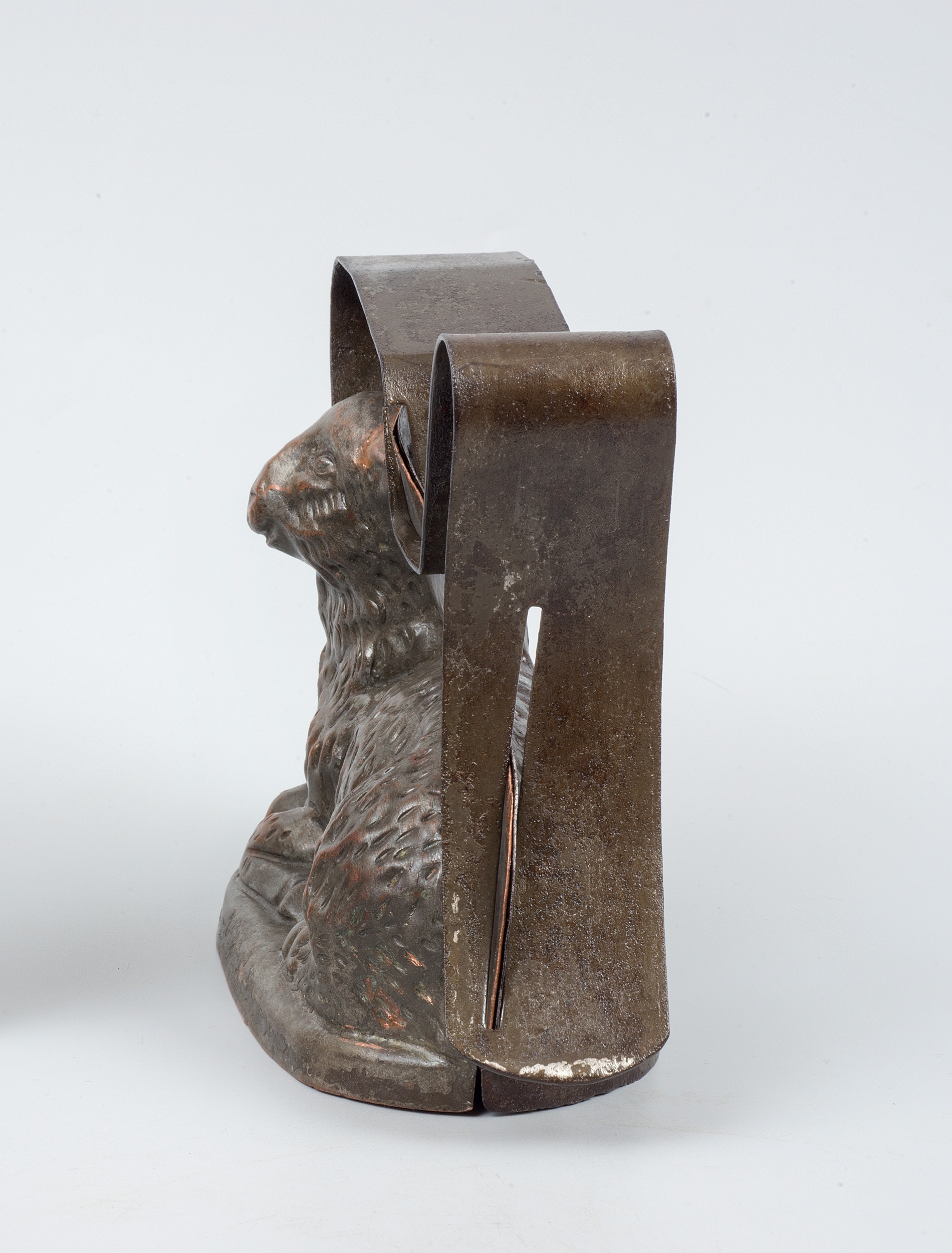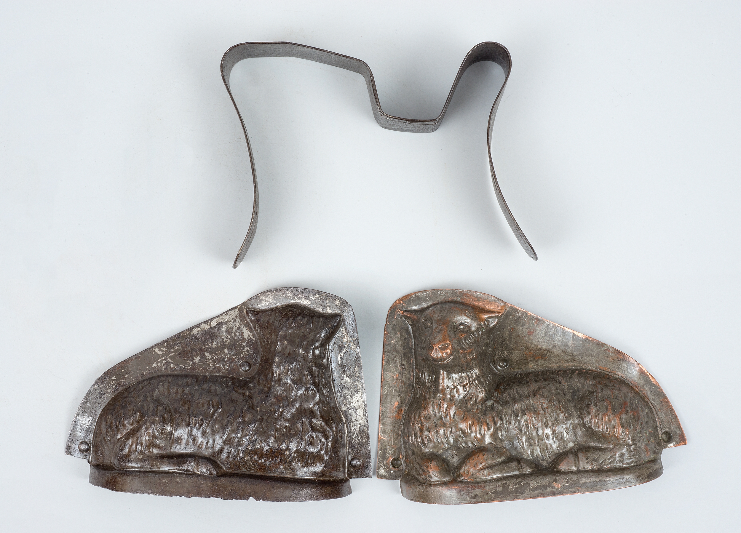 Forma trzyelementowa, składająca się z dwóch połówek i wewnętrznej sprężyny. Na powierzchni każdej połówki przedstawiono leżącego baranka, ukazanego w sposób przestrzenny i symetryczny.