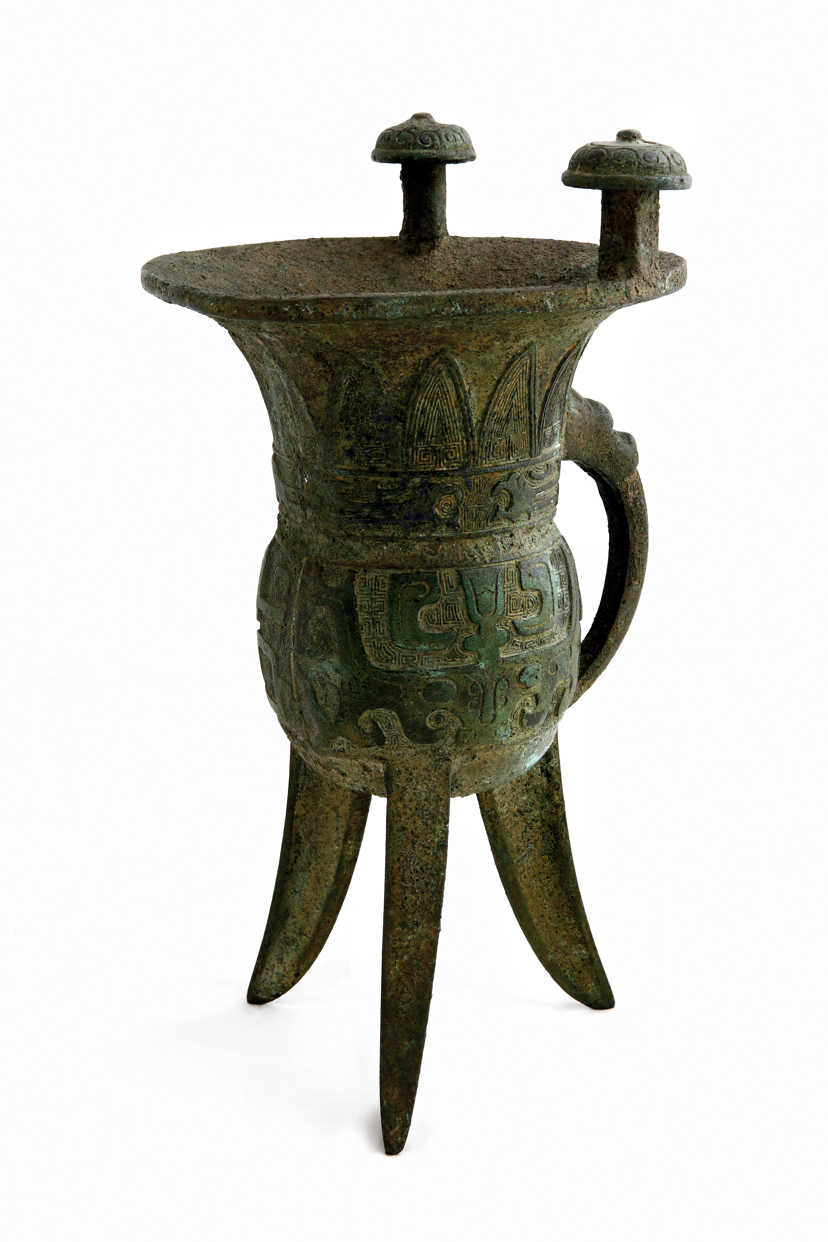 W dawnych Chinach przedmioty wykonane z brązu uważano za jedne z najcenniejszych obiektów. Brąz był materiałem przeznaczonym do „wyższych celów”. Wpływ na taką ocenę miała nie tylko skomplikowana obróbka, lecz także atrakcyjna wizualnie struktura materiału pobudzająca zmysł dotyku. Wykonywane w starożytności ze stopu miedzi i cyny naczynia obrzędowe, narzędzia, broń i instrumenty muzyczne pokrywa dziś zielonkawa patyna. Natomiast bezpośrednio po odlaniu i wypolerowaniu przedmioty te błyszczały niczym pokryte złotem. Trójnogi, puchary, kielichy, misy, dzbany itp. były zarówno symbolem władzy, jak i statusu majątkowego osoby, która je posiadała. Ich produkcja oraz użytkowanie było ściśle związane z li, czyli w najprostszym tłumaczeniu - rytuałem, który (według pierwszego chińskiego słownika Shuowen Jiezi ok. 100 r.) związany był z składaniem ofiar przed ołtarzem (najprawdopodobniej duchom przodków). Naczyń takich jak pojemniki na jadło i trunki wykorzystywano na rytualnych bankietach, na których umarli „łączyli" się z żywymi.