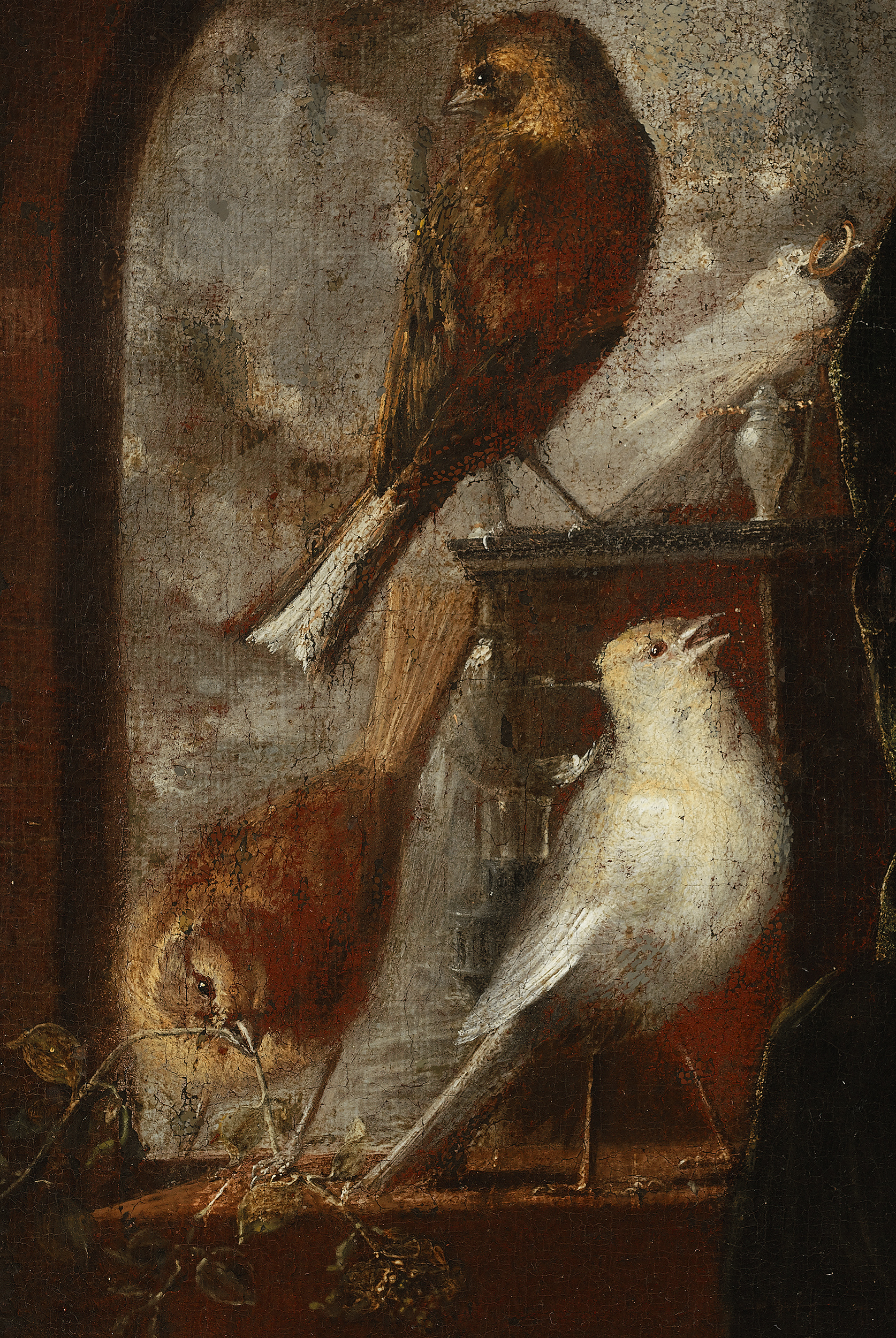 Bardzo ciekawy zarówno pod względem kompozycyjnym, jak i znaczeniowym jest motyw niszy z zasłoną - nawiązuje do typu malarstwa iluzjonistycznego mieszczącego się w tradycji caravaggionistycznej i rembrandtowskiej. Mamy tu odniesienie do idei malowanego pudełka inscenizującego obraz jako pokaz-grę, przypominający swą budową scenę teatralną. Okno-otwór w murze pozwala na konfrontację różnych punktów widzenia, stworzenie napięcia między tym, co widzialne a tym, co niewidzialne. Kamienna framuga to wrota między dwoma światami, zaproszenie do dialogu i interakcji. Udrapowana kotara okienna może stać się kurtyną barokowego theatrum.