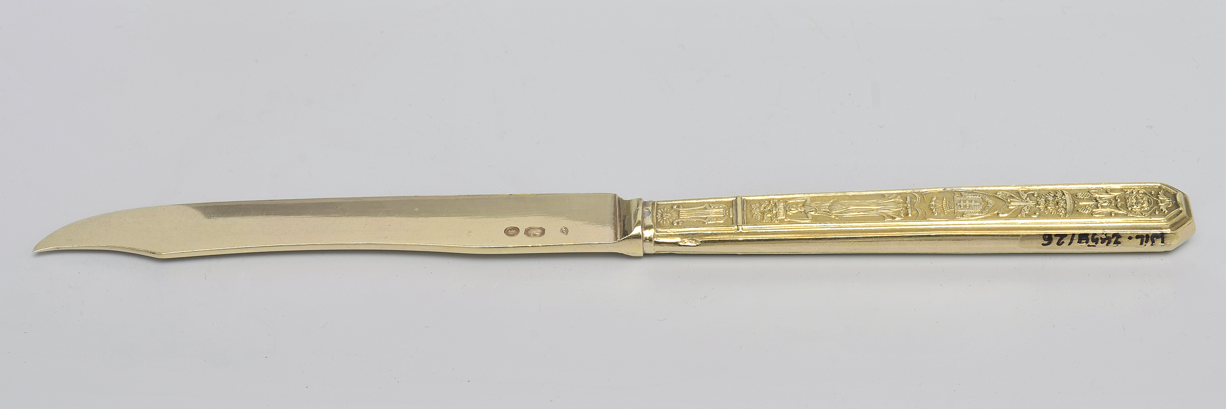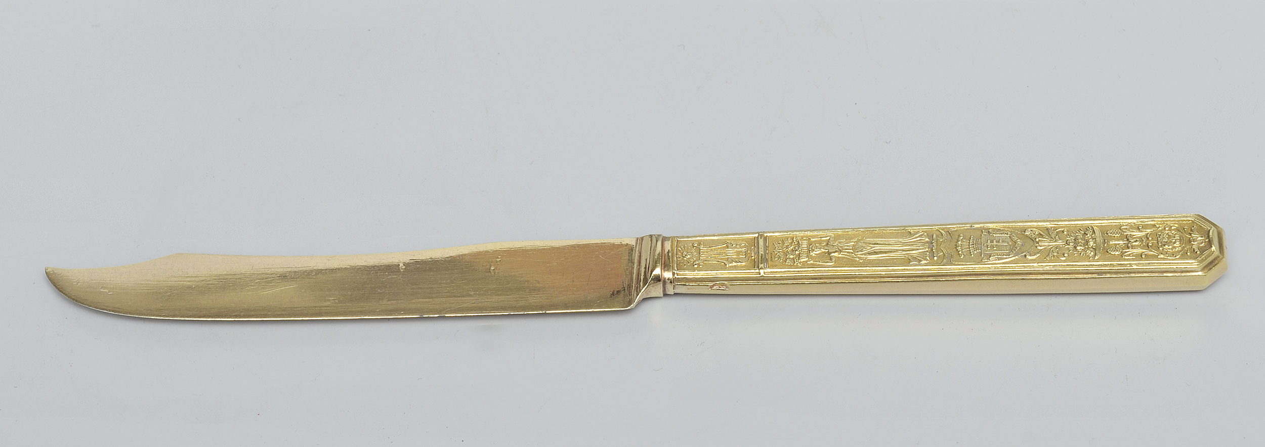 Prezentowany sztuciec jest jednym z siedemdziesięciu dwóch noży deserowych zachowanych w wilanowskiej kolekcji. Co ciekawe, cały komplet na 72 osób wykonany został przez dwóch złotników. Łyżki i widelce wykonał Dominique F. Naudin, a noże Martin G. Biennais.