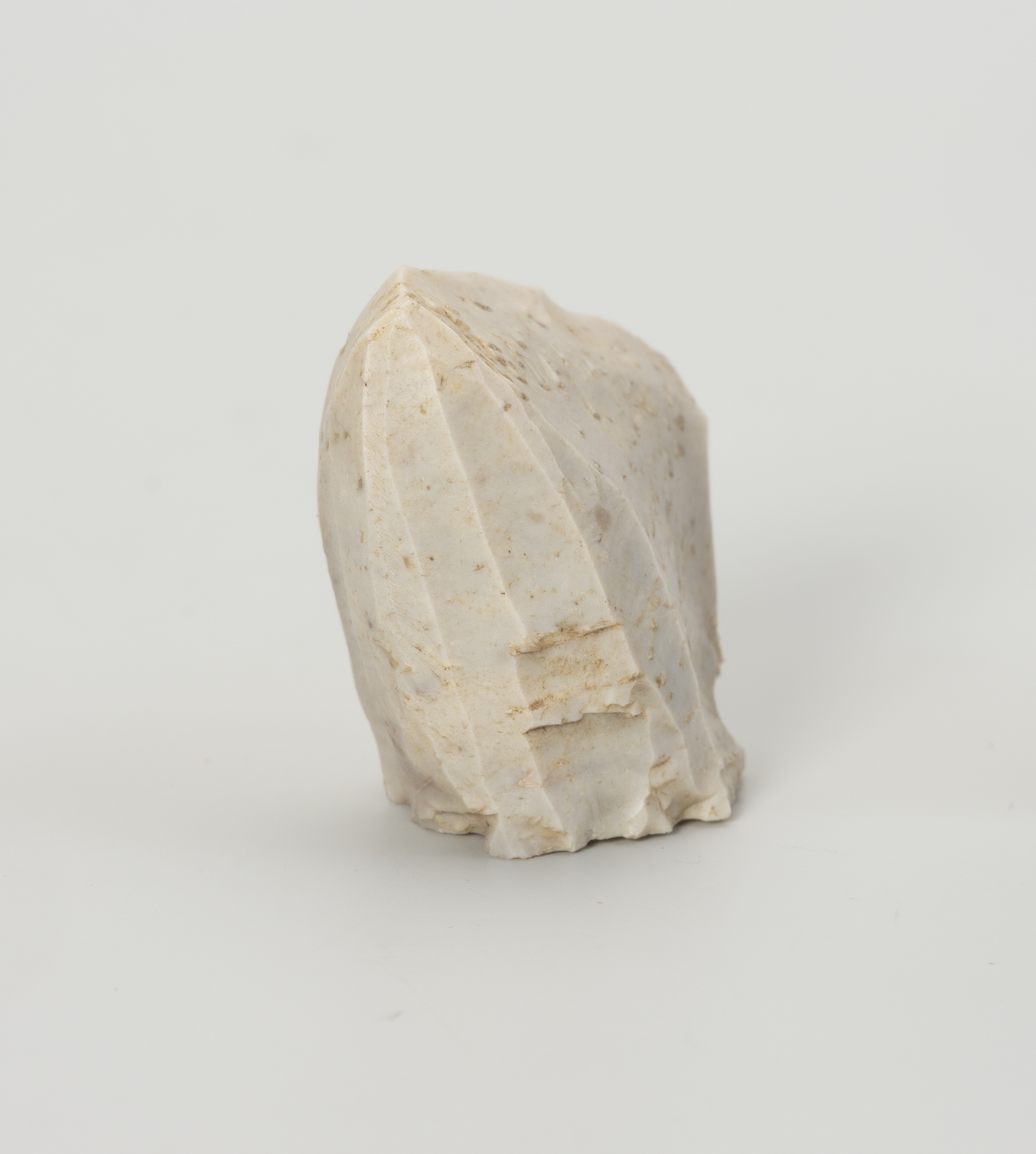 Rdzeń został porzucony w końcowym stadium eksploatacji, ponieważ z uwagi na znaczny stopień redukcji niemożliwe było jego utrzymanie w ręku przy odbijaniu wiórów lub odłupków. Ze względu na formę klasyfikuje się go jako rdzeń stożkowy. Ma dookolną odłupnię i płaską, lekko wklęsłą piętę uformowaną jednym odbiciem. Widoczny na jednej ze stron duży negatyw wskazuje na naprawę rdzenia krótko przed zakończeniem eksploatacji. Do produkcji wykorzystano bryłę krzemienia kredowego bardzo wysokiej jakości. Zabytek w całości pokryty jest białą patyną wskazującą na długotrwałe zaleganie na powierzchni.