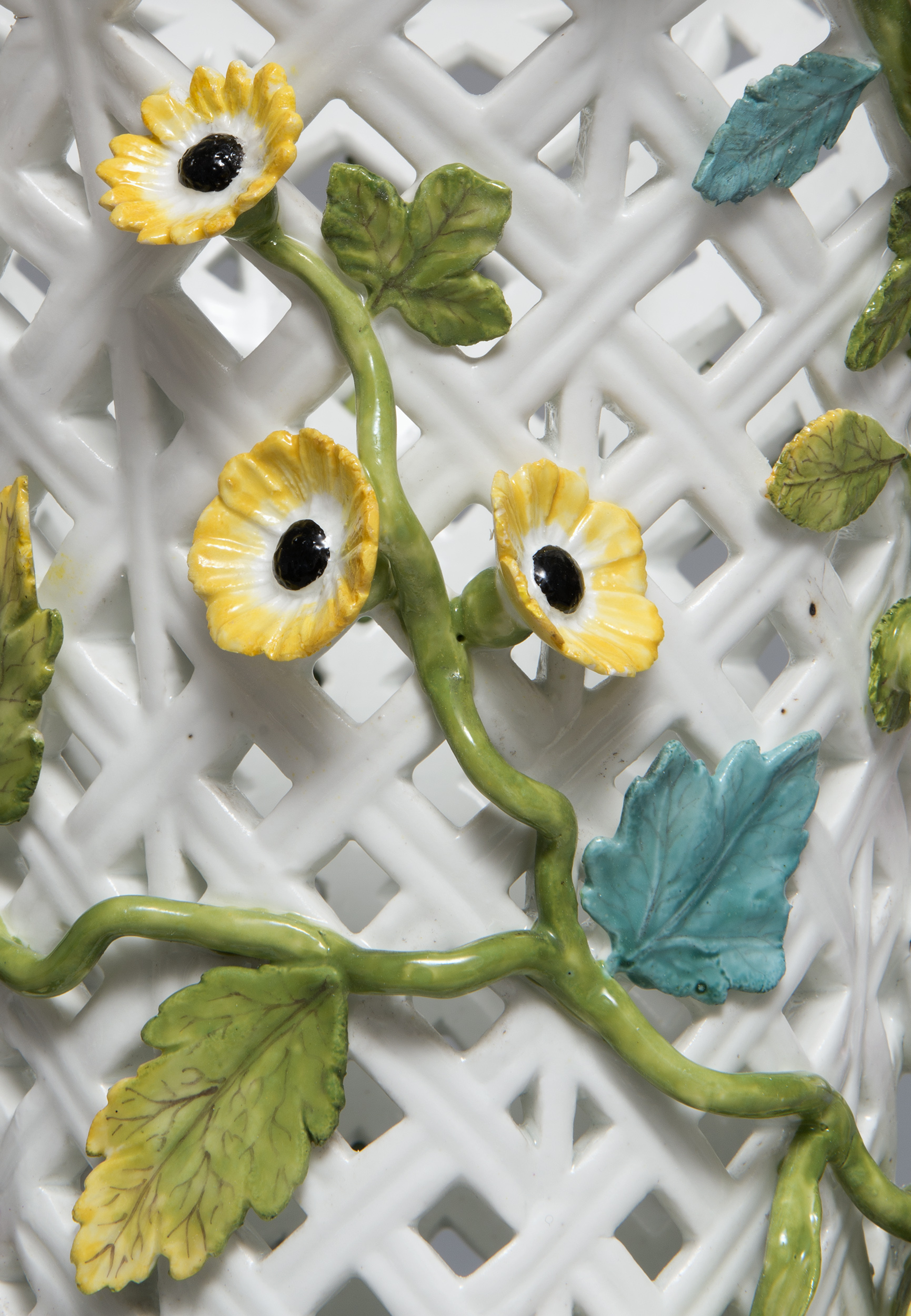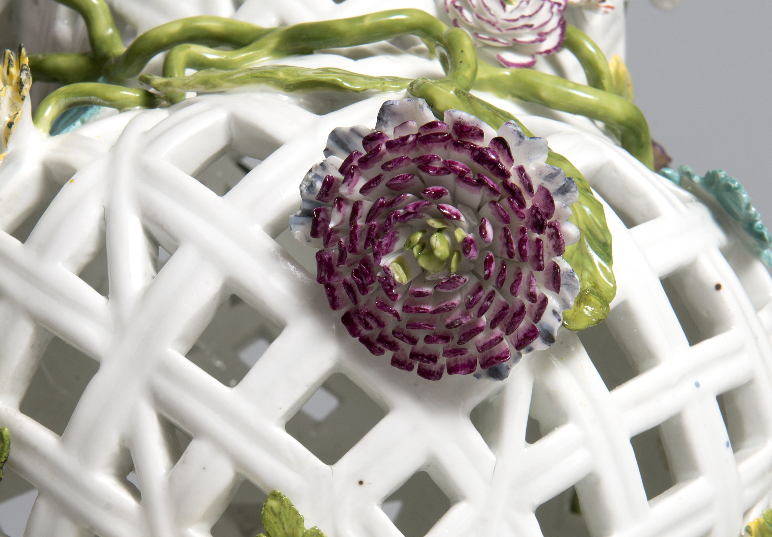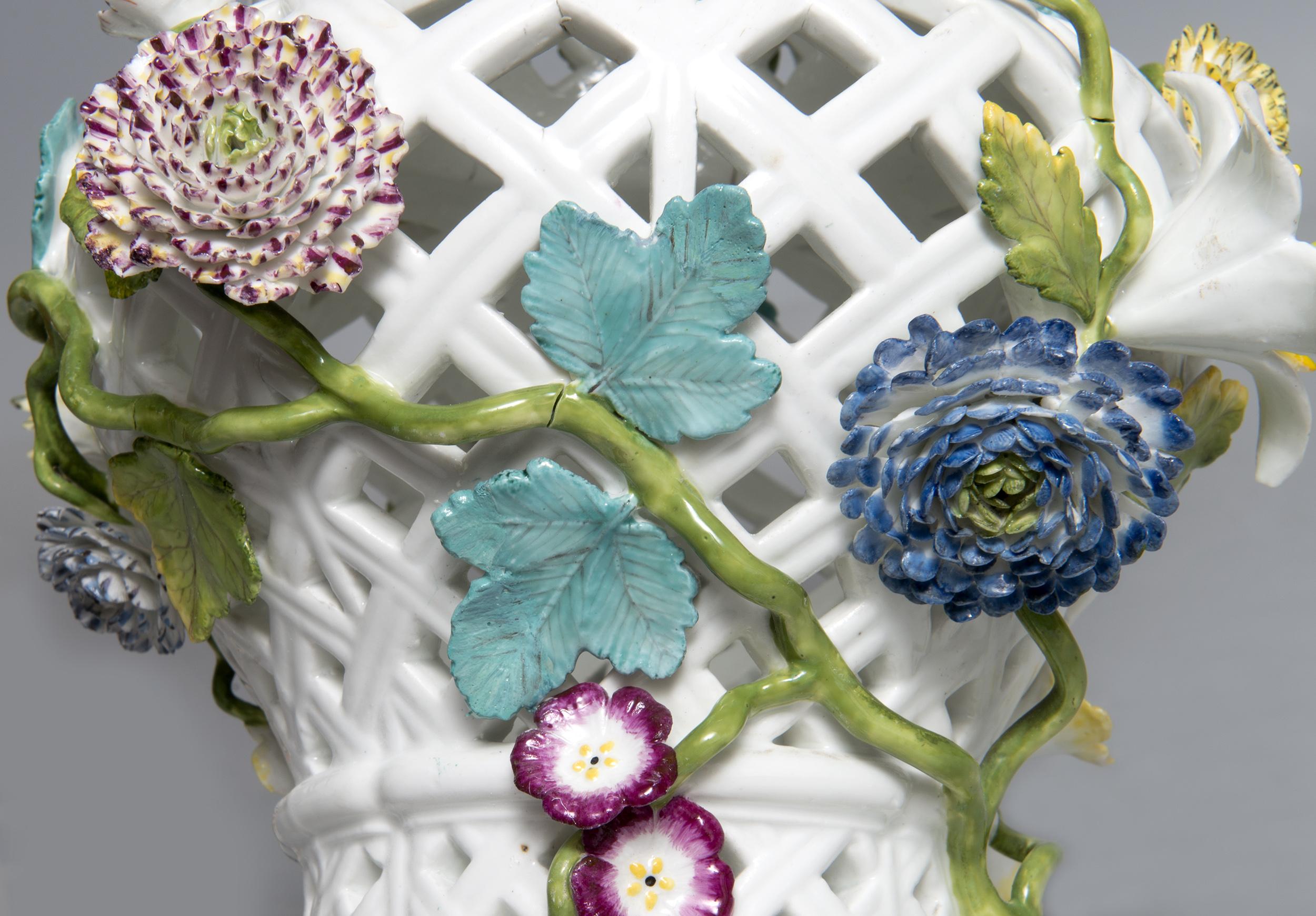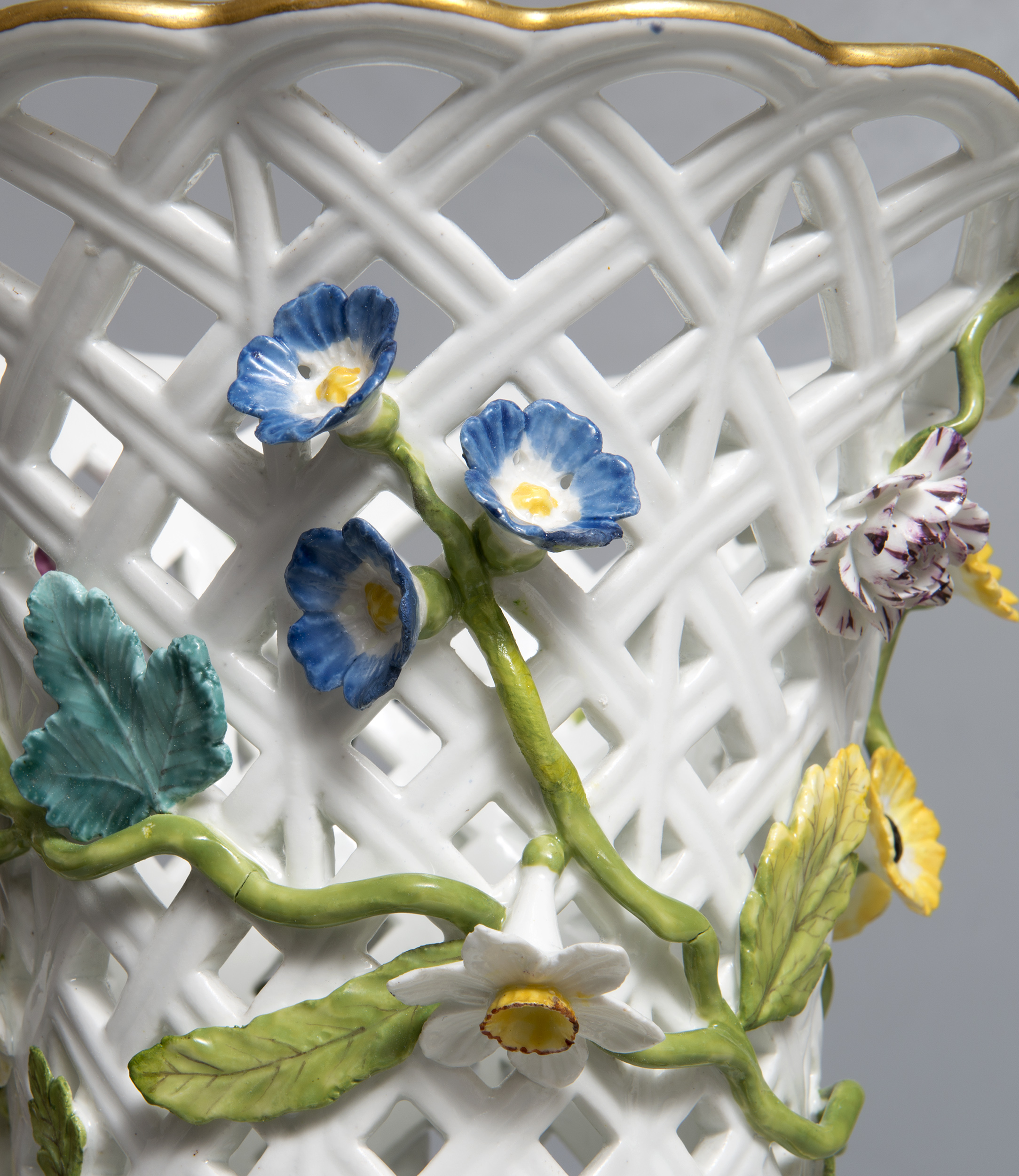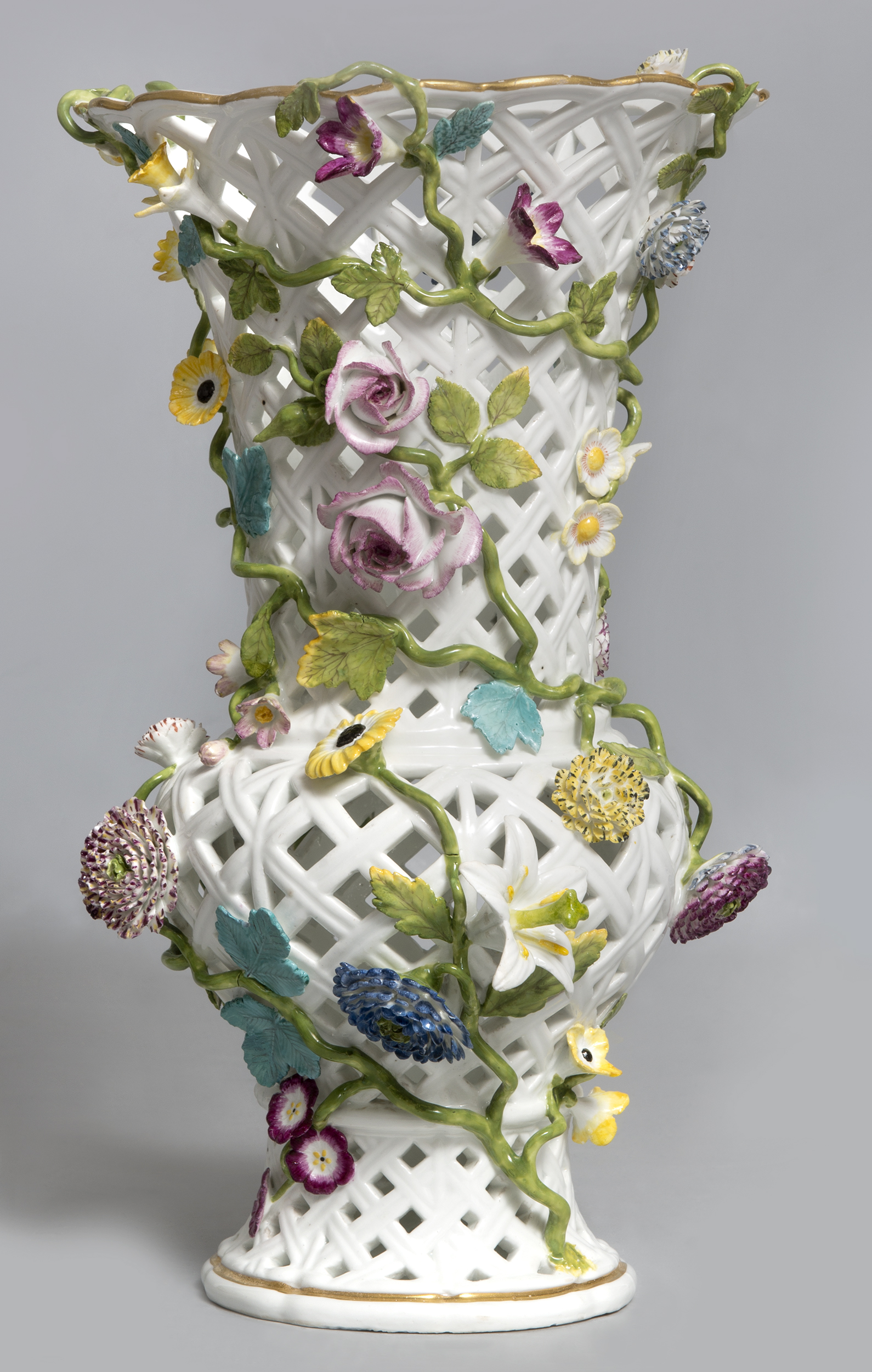 Za autora tego typu modeli uważany bywa Johann Joachim Kaendler – jeden z najsłynniejszych artystów tworzących w manufakturze. Podobno stwierdził on, że jest w stanie stworzyć z porcelany wszystko, co możliwe jest do wykonania w innym materiale. Jak widać jego słowa nie były przesadzone, a wysiłki artystów podejmowane od początków istnienia manufaktury zostały zwieńczone sukcesem. Tego typu modne, ażurowe wazony pełniły najprawdopodobniej funkcję wyłącznie dekoracyjną – ustawiano je na gzymsach kominków, szafach, konsolach, gdzie miały cieszyć oko i zdumiewać misternością wykonania.